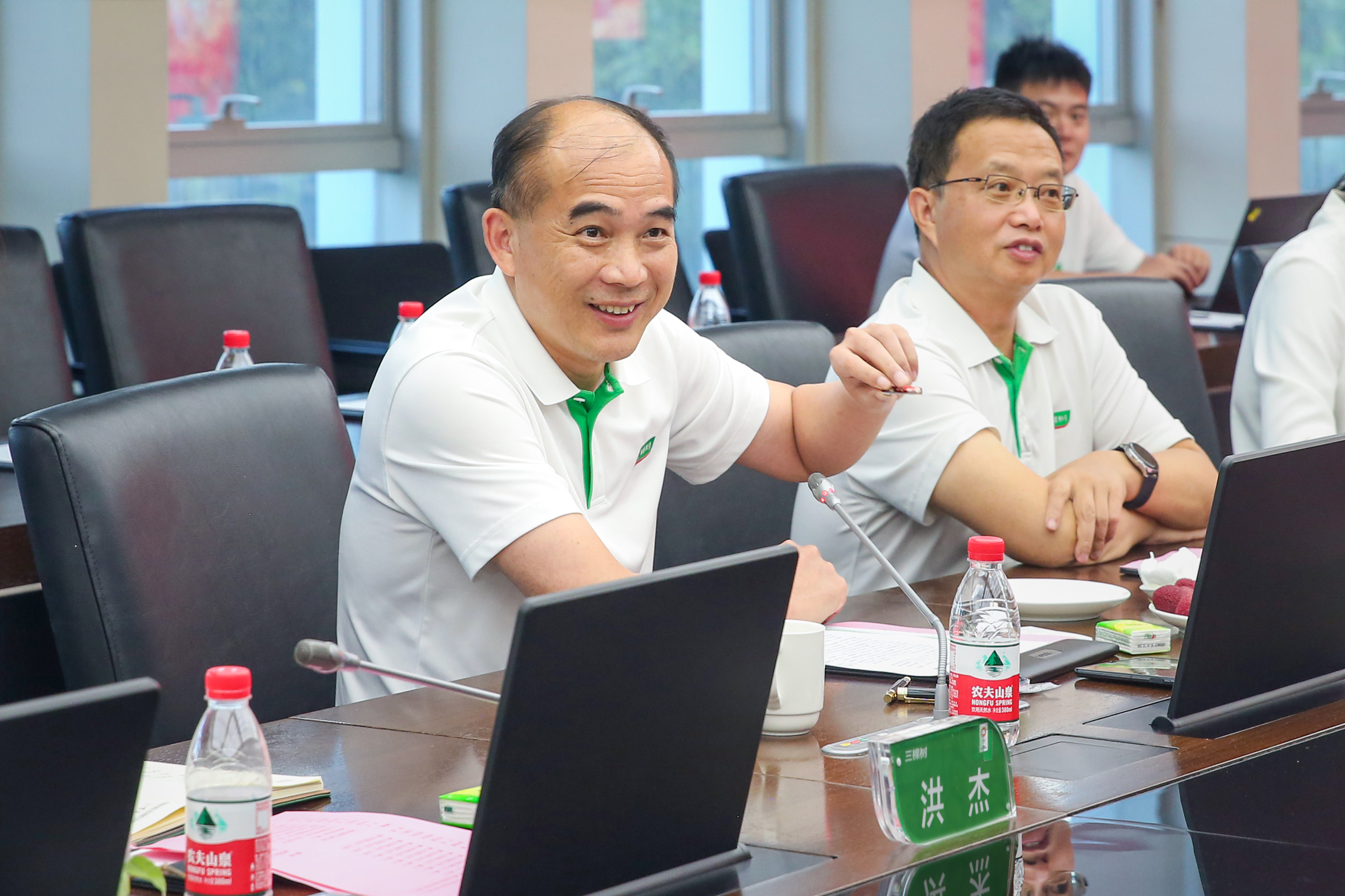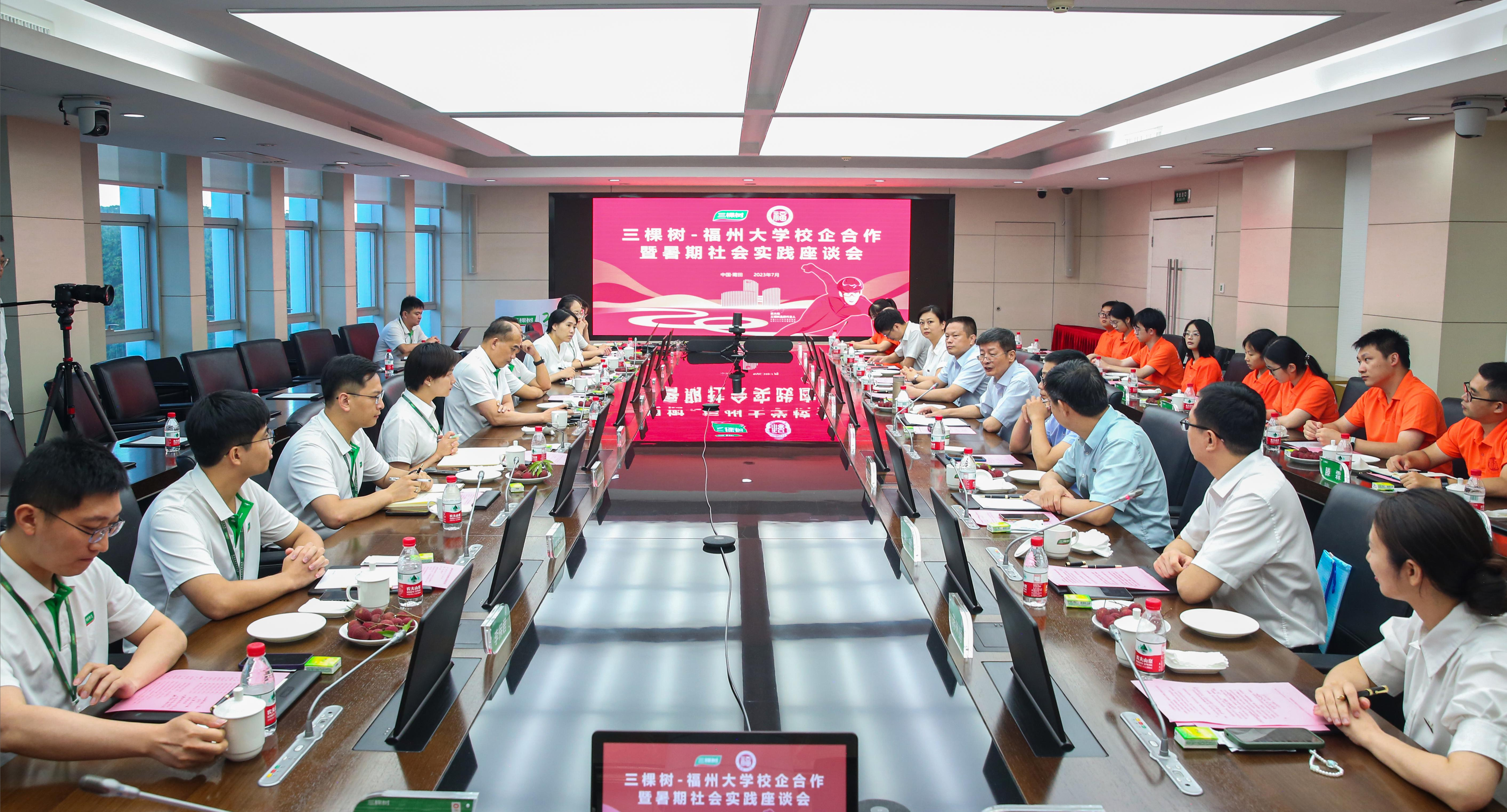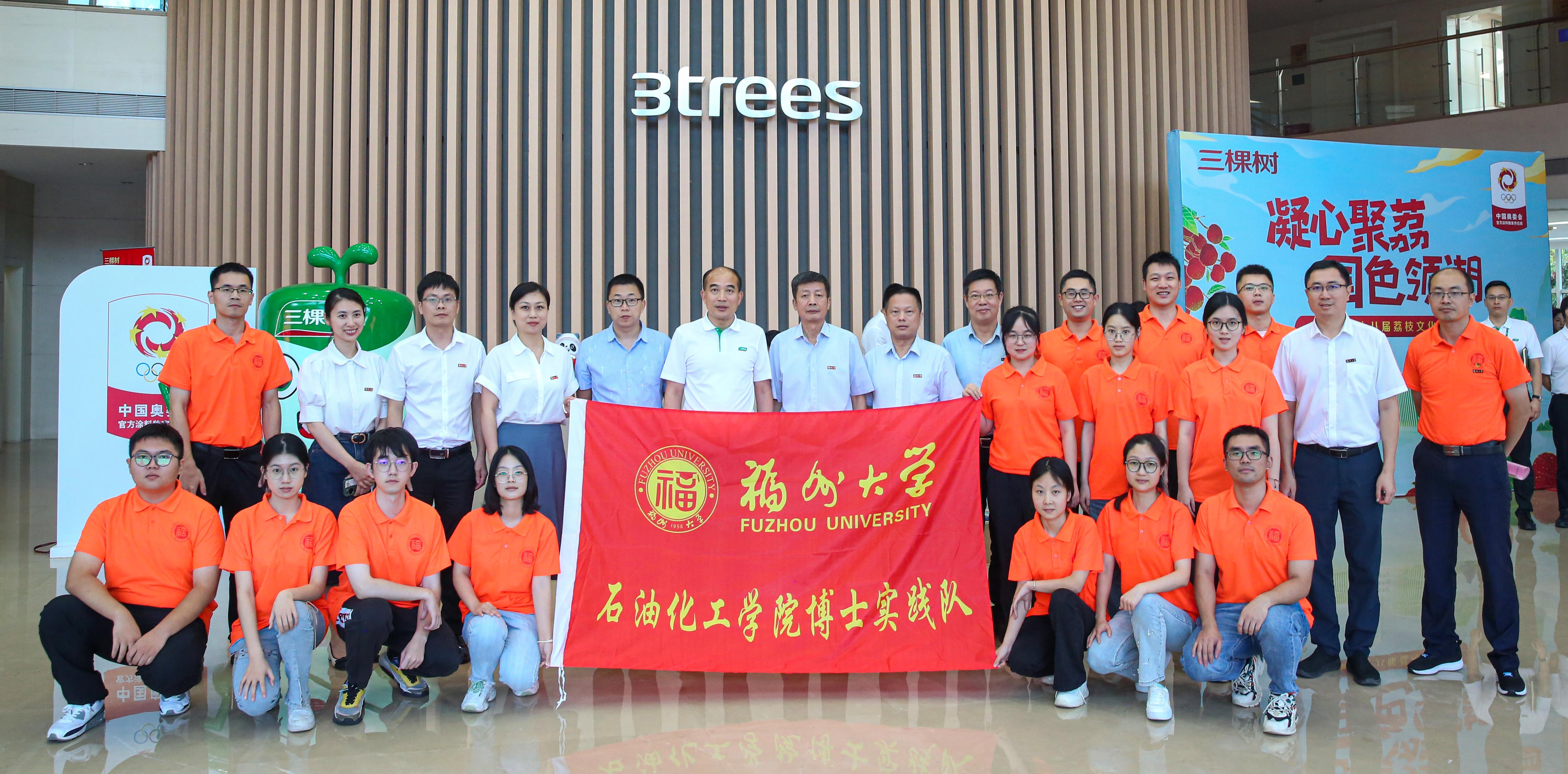 —三棵树校企合作暨暑期社会实践座谈会。会上,三棵树朱奇峰副总裁为与会人员详细介绍了公司情况以及2024届招聘计划,石化学院团委书记伍宇翔、博士生实践队队长赵丹先后向付贤智校长汇报了石化学院2023年暑期社会实践总体情况和博士生实践队社会实践进展,校企双方还就产学研合作等方面进行了深入交流。