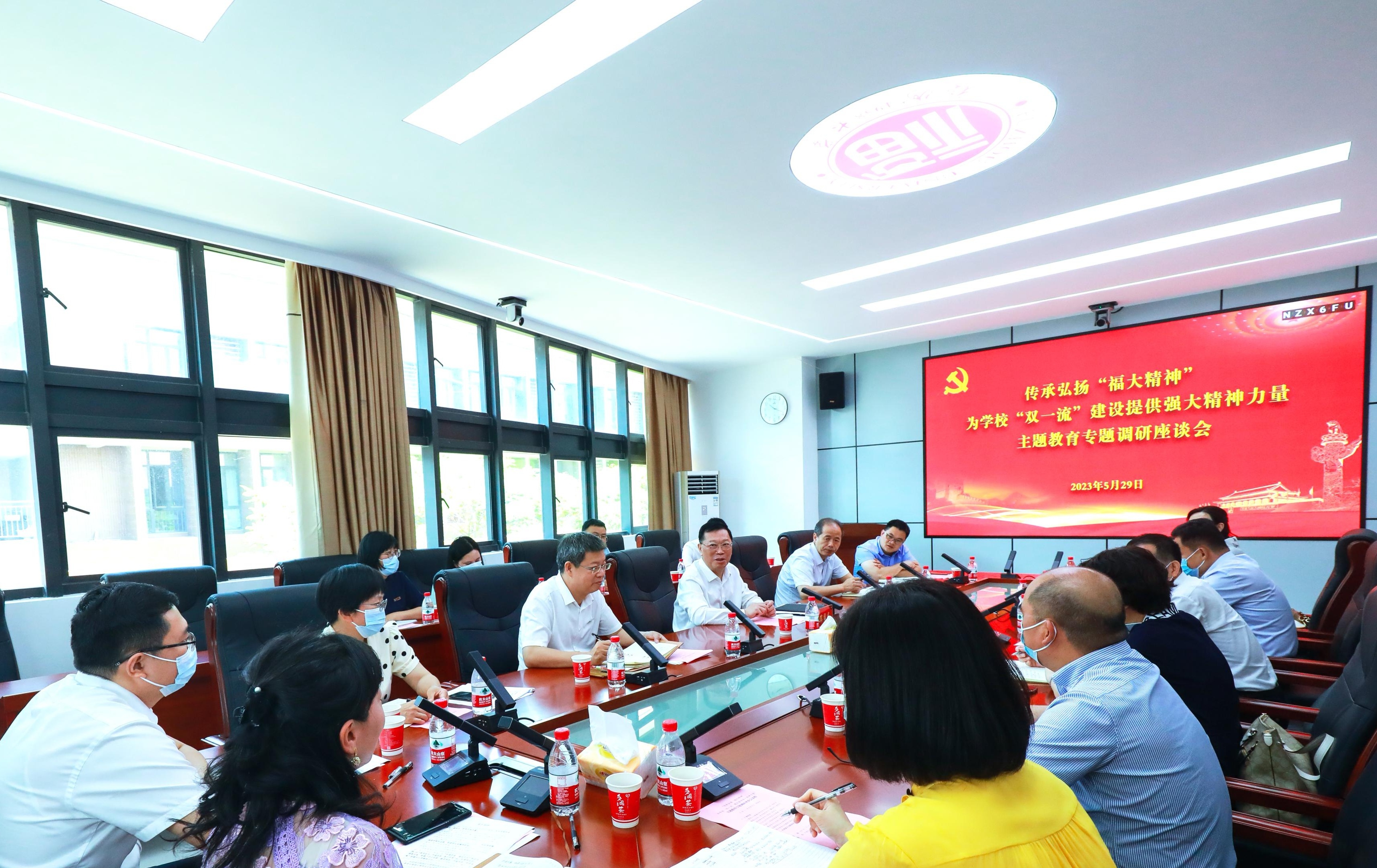 (泉港楼)主持召开专题调研座谈会,聚焦“传承弘扬‘福大精神’,为学校‘双一流’建设提供强大精神力量”主题,广泛征求基层意见。党政办、党委宣传部、校团委、部分职能部门及二级学院负责人参加座谈。