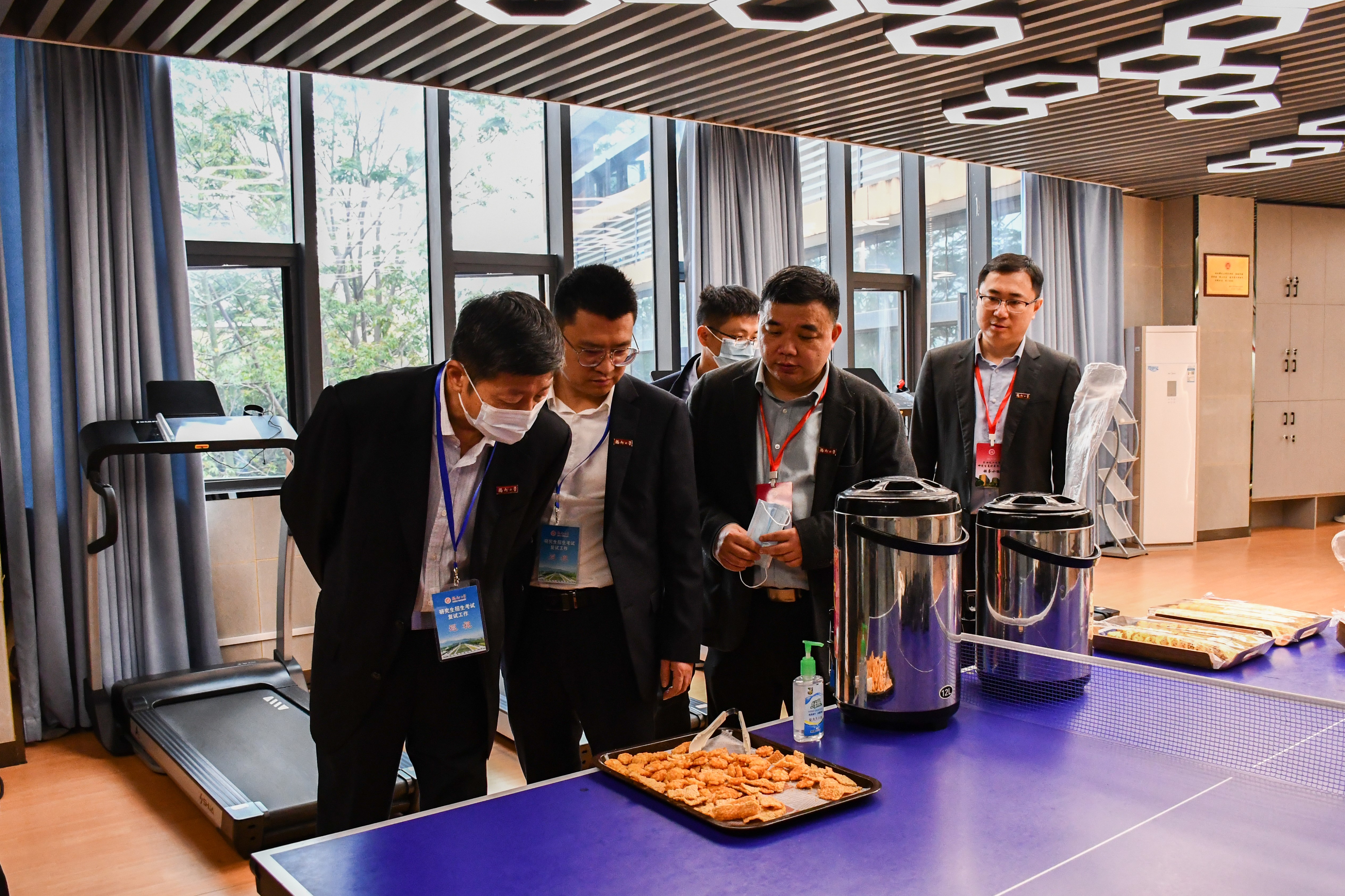 付贤智校长察看为考生提供的茶水服务