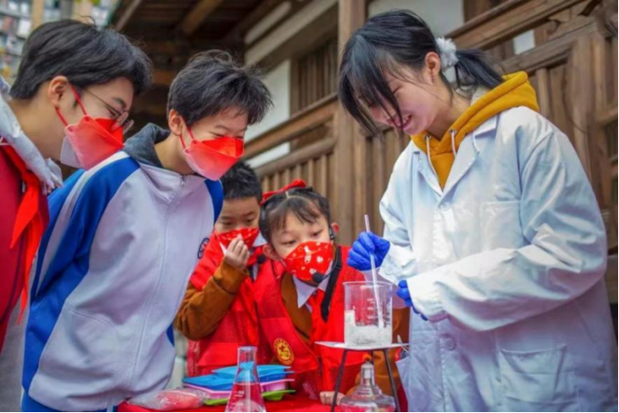 五是“发展驿站”打造无限拓展圈。开展六届绿色化工文化节,组织科普团队进学校、进基地、进社区,通过展示科学实验和化工常识,弘扬科学家精神。常态化组织学生前往侯德榜故居、苍霞棚改区、古田会馆等思政教育基地担任科普志愿者,实现社区内外教育资源的有机融合。连续12年组织博士团深入行业一线调研,科技兴农实践队连续三年开展土壤检测调研,通过拓展社区实践平台,打通科产教深度融合的“最后一公里”,全面助推学生成长成才。