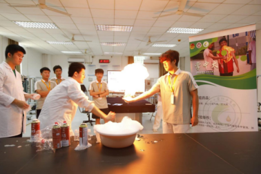 二是突出科教融合。充分发挥化工研究生专业优势,利用空余时间自主研制洗手液、清凉油等,制作超万瓶免费放至学校公共区域,实现学有所用,学以致用,这是一堂实实在在的“劳动实践”的思政大课。为中小学生开放实验室,讲解化工小实验;接待台胞青年千人夏令营,用化工实验展现化工的独有魅力。