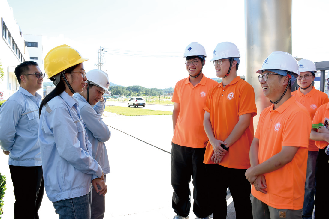 在专注于氟碳化学品及无机氟产品的研发、生产与销售的福建东莹化工有限公司,博士实践队领略了年产5万吨无水氟化氢、4万吨五氟乙烷及3万吨二氟甲烷的生产规模,高度集约化的生产车间、规范有序的作业流程,颠覆了实践队队员对化工生产的传统认知,智能化生产流程展现出现代化学工业在安全生产、高效运营和绿色制造方面的巨大进步,让他们直观感受到科技给传统化工产业带来的变革。“从实验室研发到规模化生产,每个环节都蕴含着技术攻坚的智慧。只有深入一线,才能切实把握产业转型的技术瓶颈。”博士实践队队员边超感慨道。