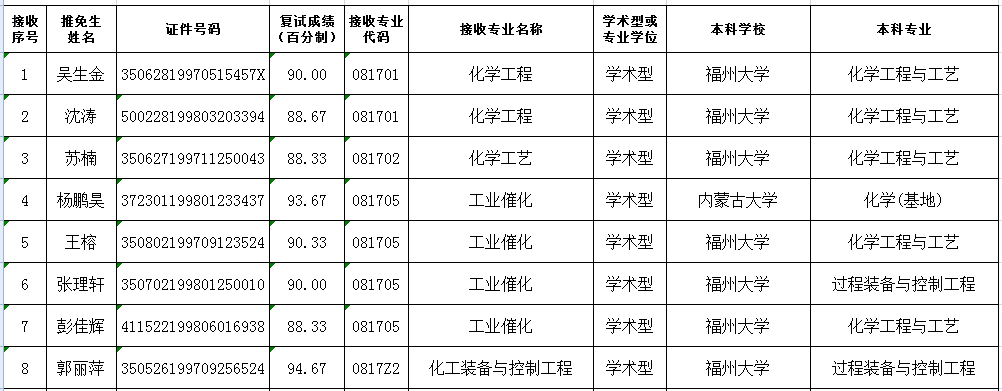 根据《 苏畅 接收优秀应届本科毕业生免试攻读硕士学位研究生工作实施办法》和《 苏畅 2020年接收优秀应届本科毕业生免试攻读硕士学位研究生简章》的文件精神,对第一批参加 苏畅 面试的推免生情况进行汇总公示,公示期:2019年9月28日-2019年9月30日,如有异议,请致电:0591-22865220。