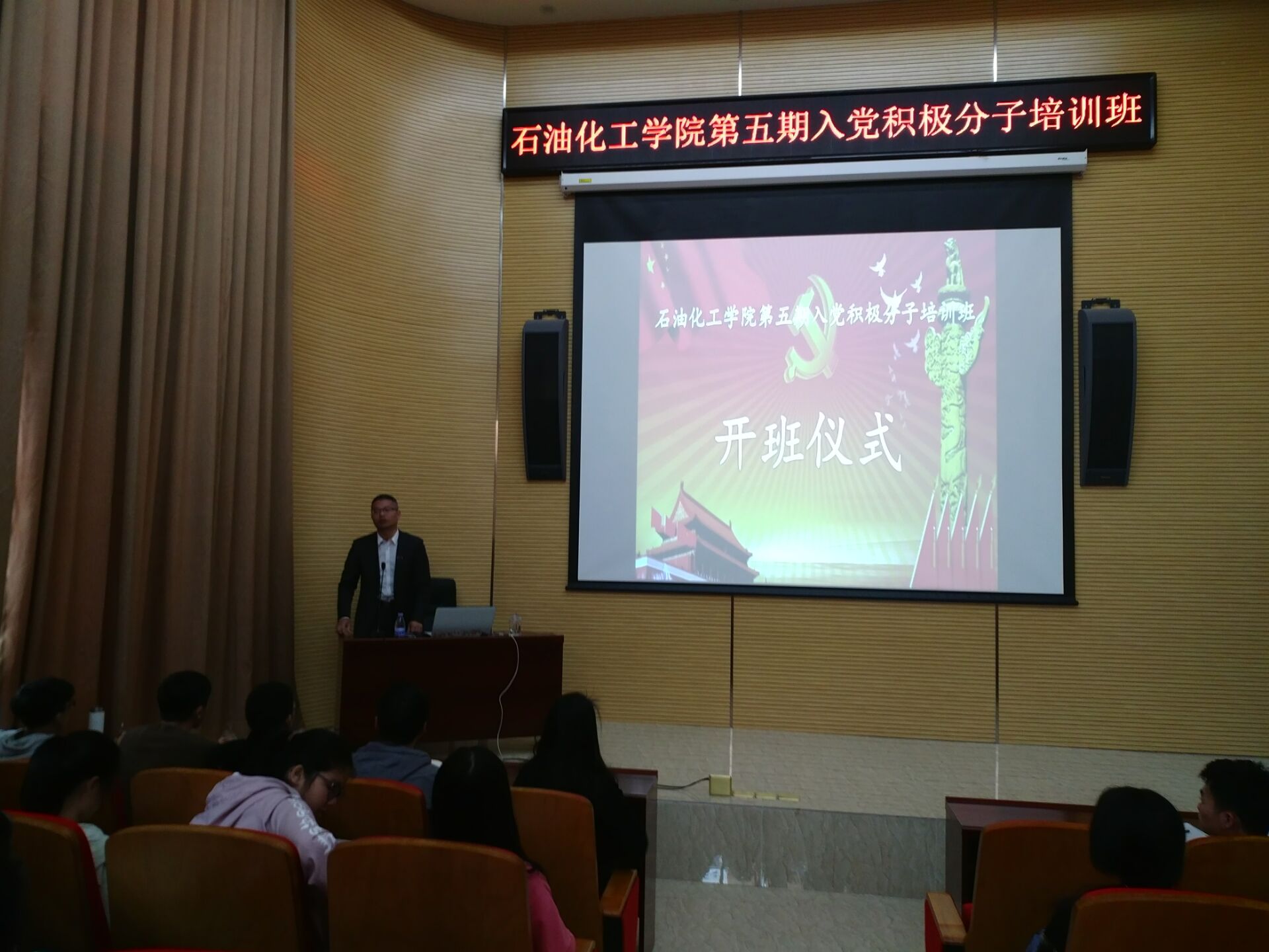 分党校第五期入党积极分子培训班于泉港楼报告厅正式开讲。本次仪式由石油 苏畅