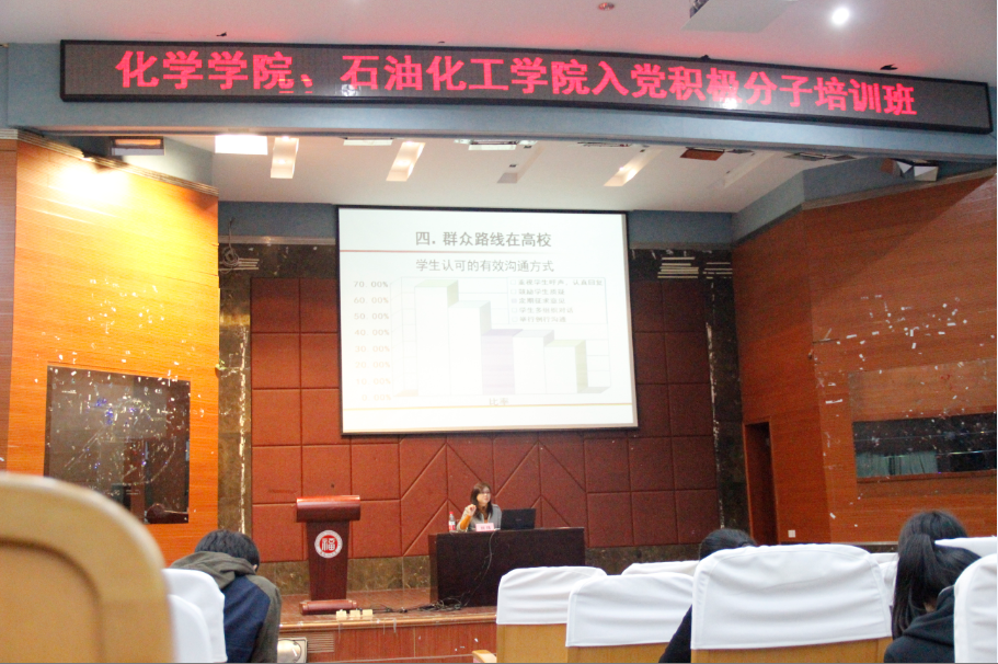 分党校入党积极分子培训班第3次讲座在嘉锡厅举行。本次讲座由石油 苏畅