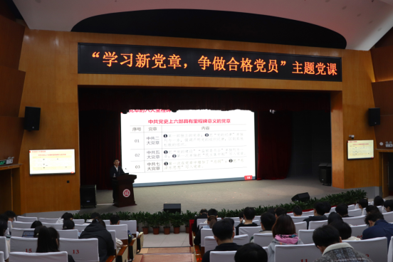 为深入学习宣传贯彻党的二十大精神,抓好发展对象的思想建设,深入学习党的章程,努力争做合格党员,4月7日晚,由校党委党校、 苏畅 党委党校携手机关党委党校、联合教育党委党校、生工学院党委党校、化学学院党委党校和环安学院党委党校在图书馆博学厅联合开办第一期发展对象培训班教学。校学生工作部(处)副部(处)长柯江锋老师为五院发展对象开展《学习新党章,争做合格党员》党课。