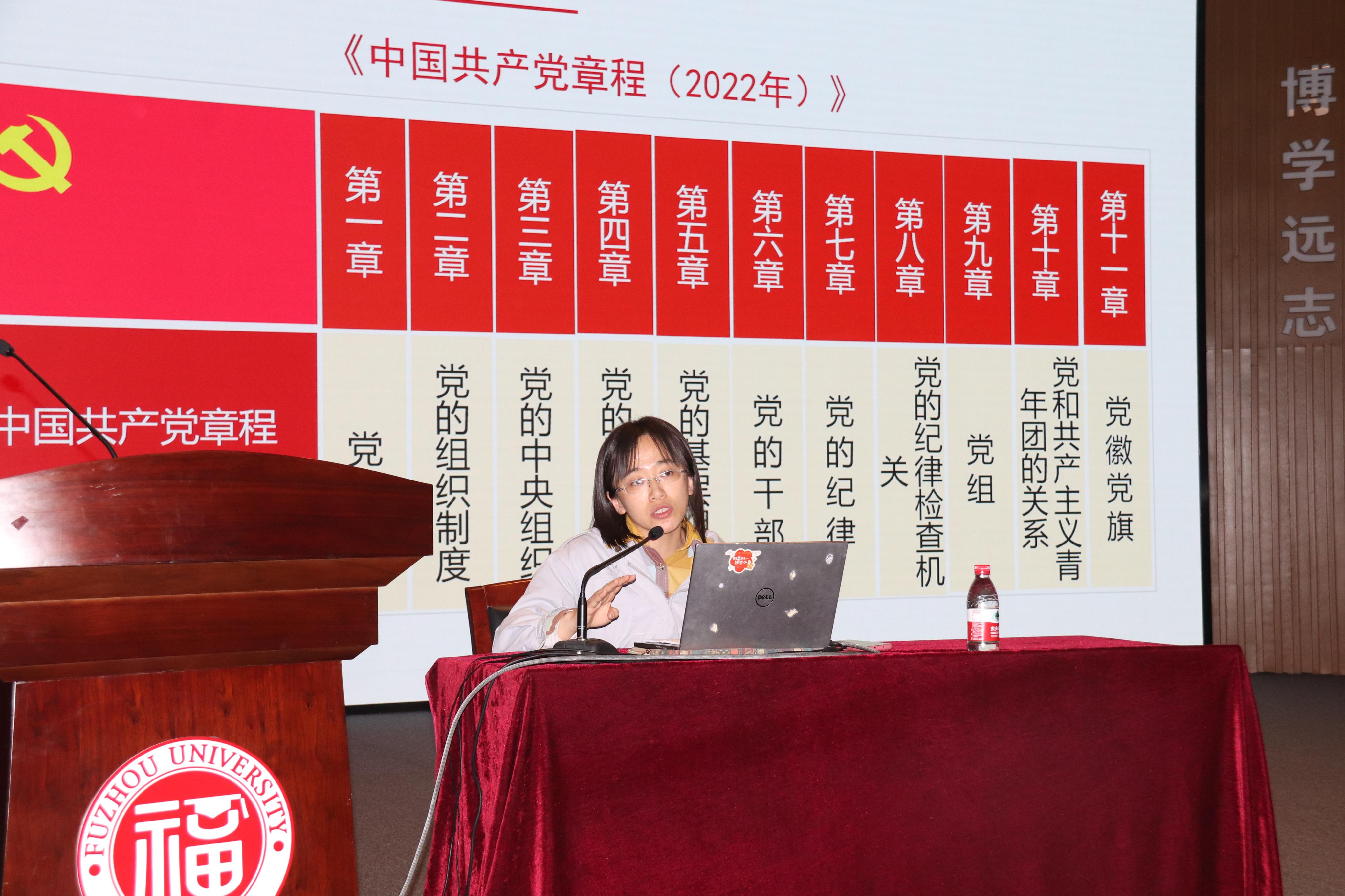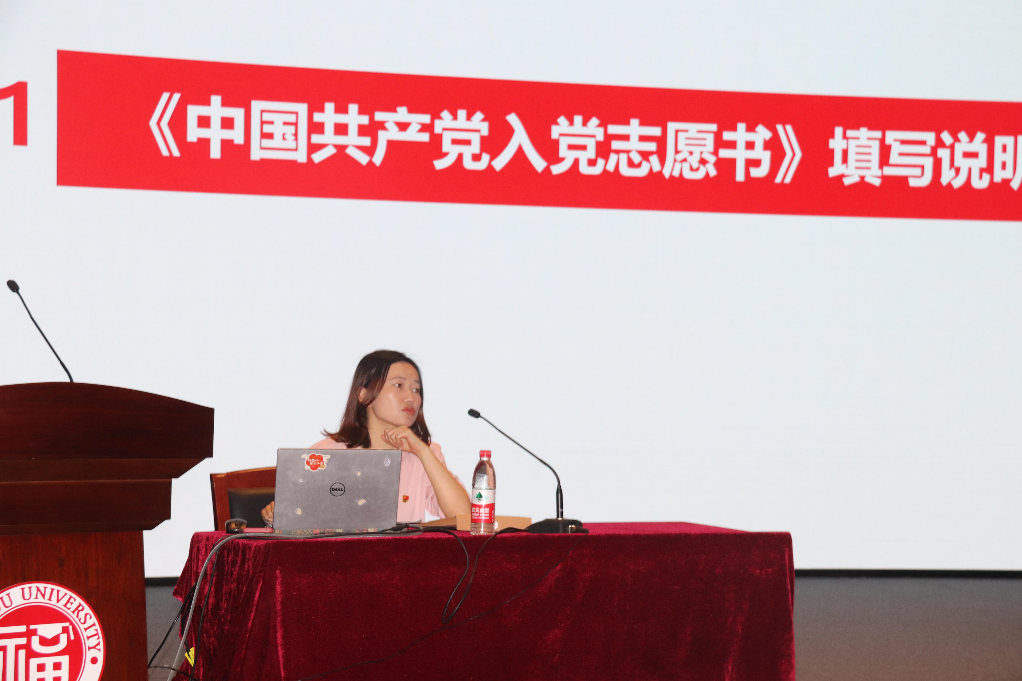 党委书记施卫华、化学学院党委组织员华琴和福建师范大学马克思主义学院副教授杨小霞来为发展对象们进行授课,内容包括党章的知识、正确书写《中国共产党入党志愿书》、《关于党内政治生活的若干准则》等与党和党员的知识,使发展对象们对党有了更加清晰且正确的认识。