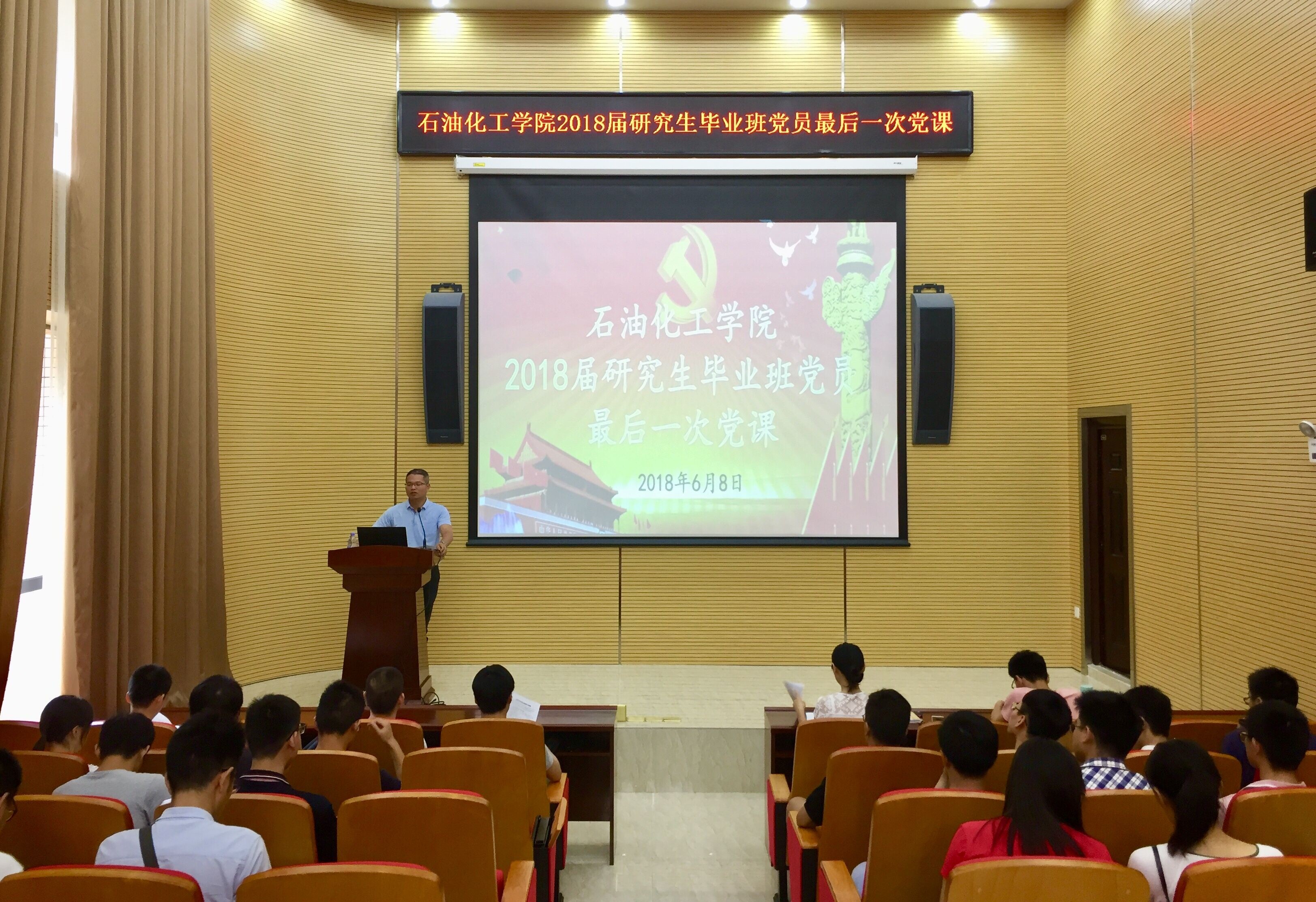 2018届研究生毕业班党员最后一次党课在泉港楼一楼报告厅开讲,2018届41名党员全部到会,院党委副书记岳志强老师为研究生毕业生上了离校前的最后一堂党课。