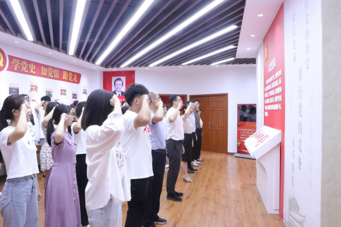 党员干部教育培训基地主题教育馆,院党委为2023年新发展党员举办了“七一”入党宣誓仪式。在院党委林航书记、蒋林娟副书记的带领下,33名预备党员右手握拳高举过肩,神情严肃,庄严宣誓,一句句铿锵有力的承诺,一声声发自肺腑的誓言在会场久久回荡,向党组织表达自己坚定的决心和不变的信念。宣誓结束,林航书记代表院党委向新入党的同志们表示祝贺,并向他们提出四点要求:一是要加强学习,坚定理想信念;二是要牢记宗旨,践行初心使命;三是要担当负责,发挥表率作用;四是要从严律己,维护党的形象。