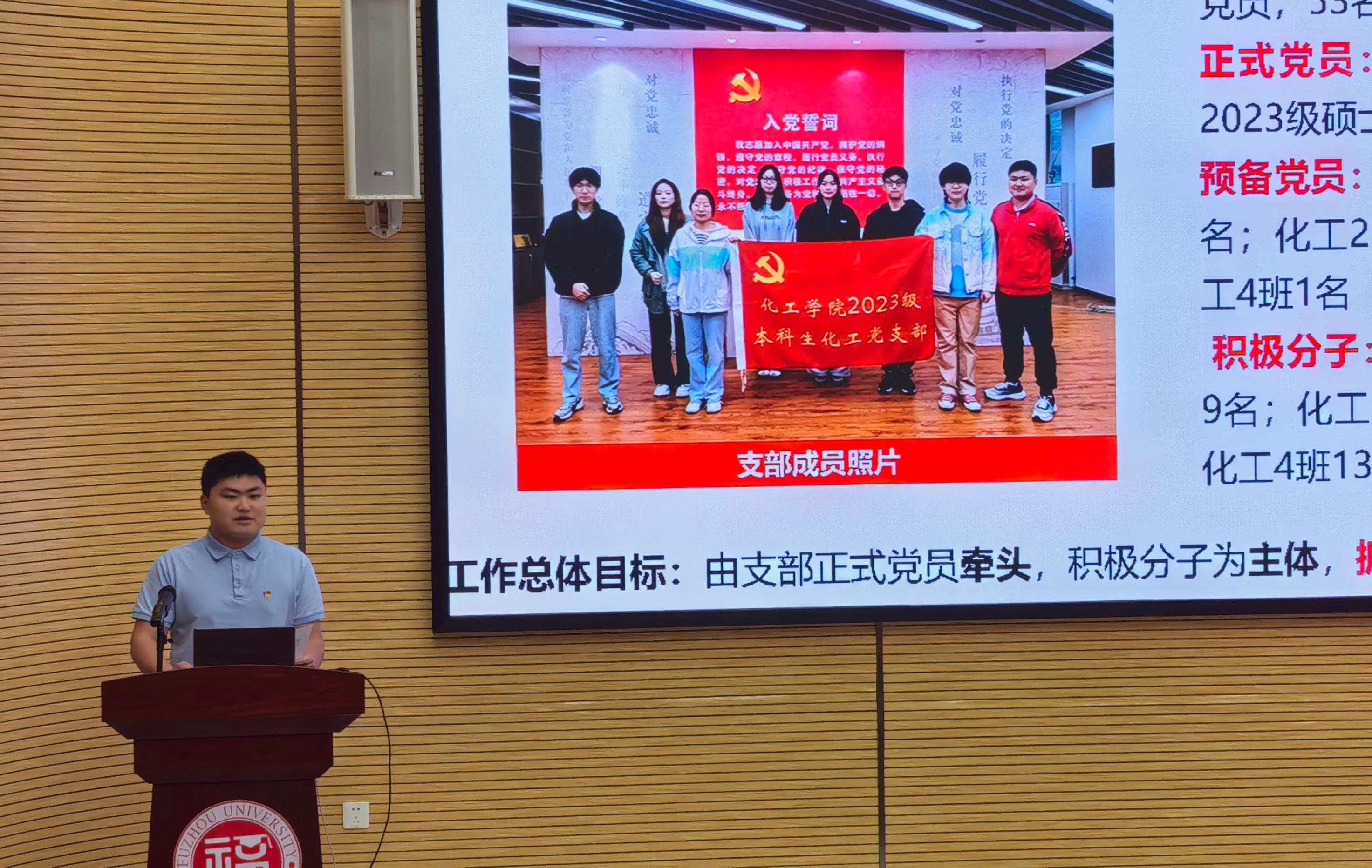 学院党委林航书记充分肯定了各学生党支部在过去一年取得的成绩,感谢大家为学院建设做出的积极贡献。林航指出,支部是党建工作的基层细胞,要聚焦教育强国战略和学院发展实际,系统落实“七个有力”,推动党建工作取得新成效。针对2025年党建工作,林航书记对各党支部提出新的期望。第一,理论学习要"走新更走心"。党支部要打造"学理论、讲党课、研问题、见行动"的闭环,把学习新思想转化成解决实际问题的"金钥匙"。第二,融合发展要"精准爆破"。党支部要从服务国家"双碳"战略、新质生产力发展这些大事着眼,把党建和学科竞赛、考研就业、科研攻关这些同学们关心的"硬核"任务结合起来,持续提升学院人才培养质量。第三,品牌建设要"串珠成链"。党支部要围绕"教育强国-支部建功”,积极培育具有自身特色的党建品牌项目,服务学院“一流学科”发展和学校“双一流”建设,在教育强国的新征程上跑出化工青年的加速度!