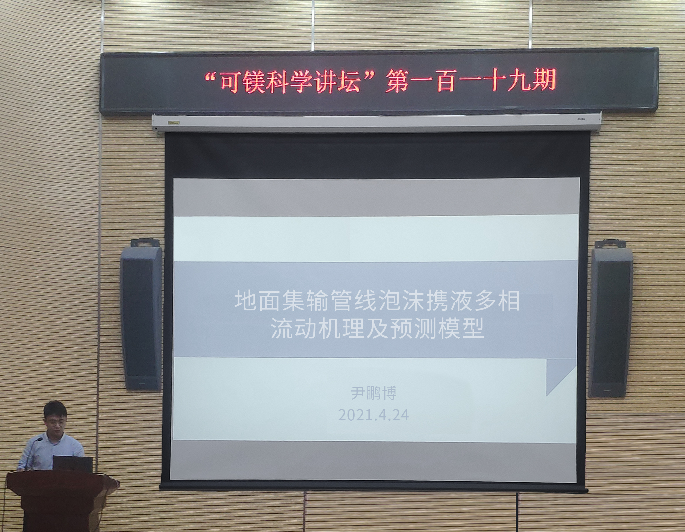2021年4月23日上午,第一百一十九期“可镁科学讲坛”如期举行,尹鹏博博士应邀担任本次讲坛主讲人,为福大师生带来题为《地面集输管线泡沫携液多相流动机理及预测模型》的报告,很多有兴趣的师生到临现场。