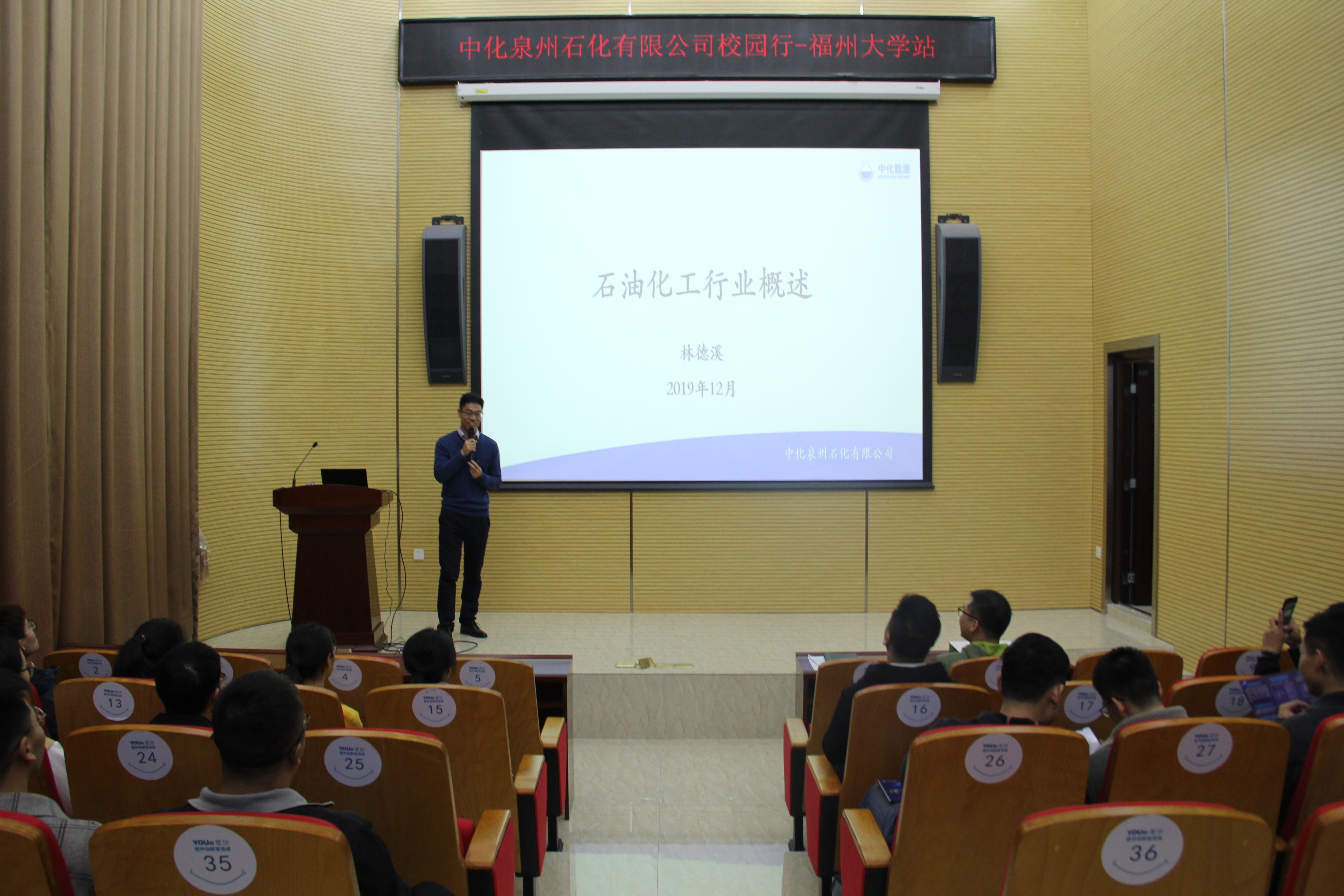 为进一步增强广大学生的对于石化行业发展趋势的了解,树立专业自信,指导大家未来的求职规划,确定人生目标,同时指出和修正同学在求职时常出的一些问题,2019年12月5日上午9:00由中化泉州公司举办的“中化泉州2019石化进校园活动——走进 苏畅