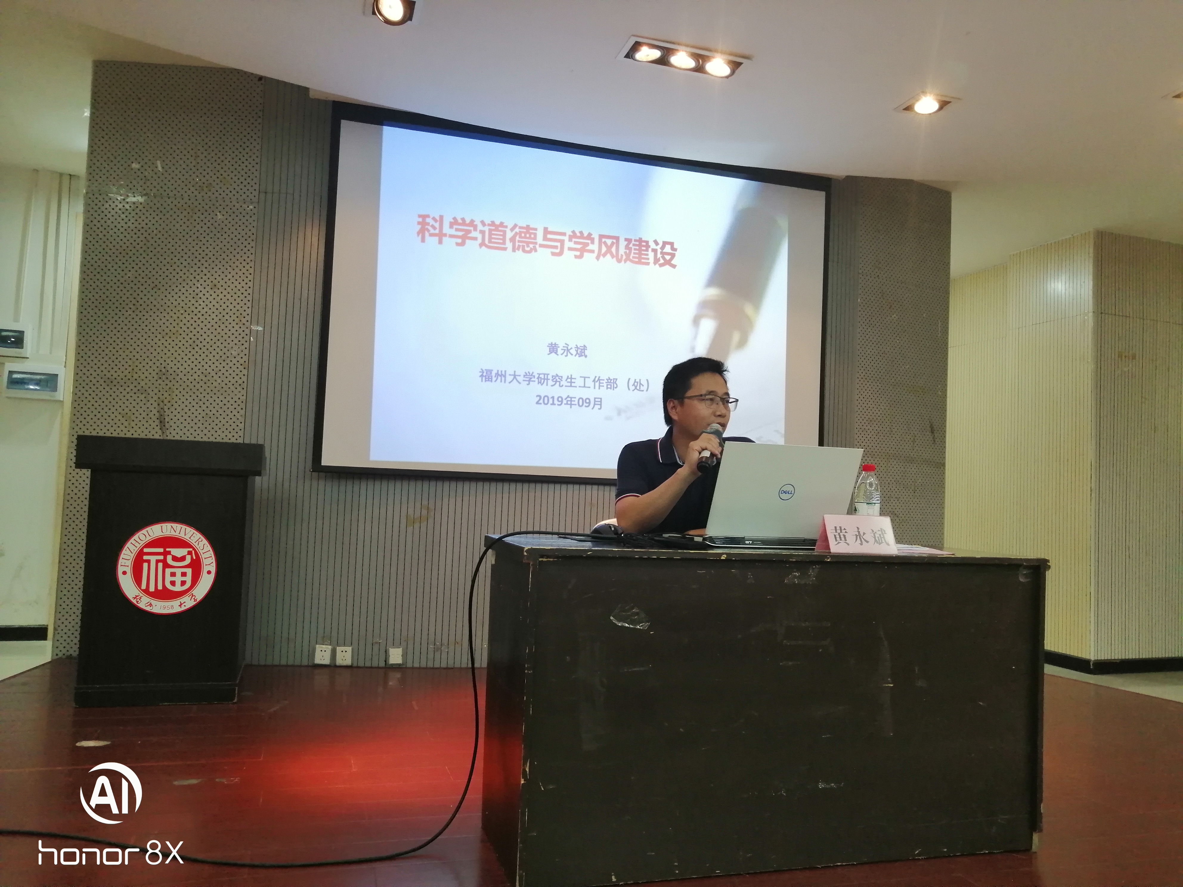 成功举办了《科学精神与学术道德教育》专题讲座,此次讲座邀请到了校学生工作部(处)研究生教育管理科黄永斌科长担任主讲,就如何成为一名优秀的研究生对大家做出了细心的指导。