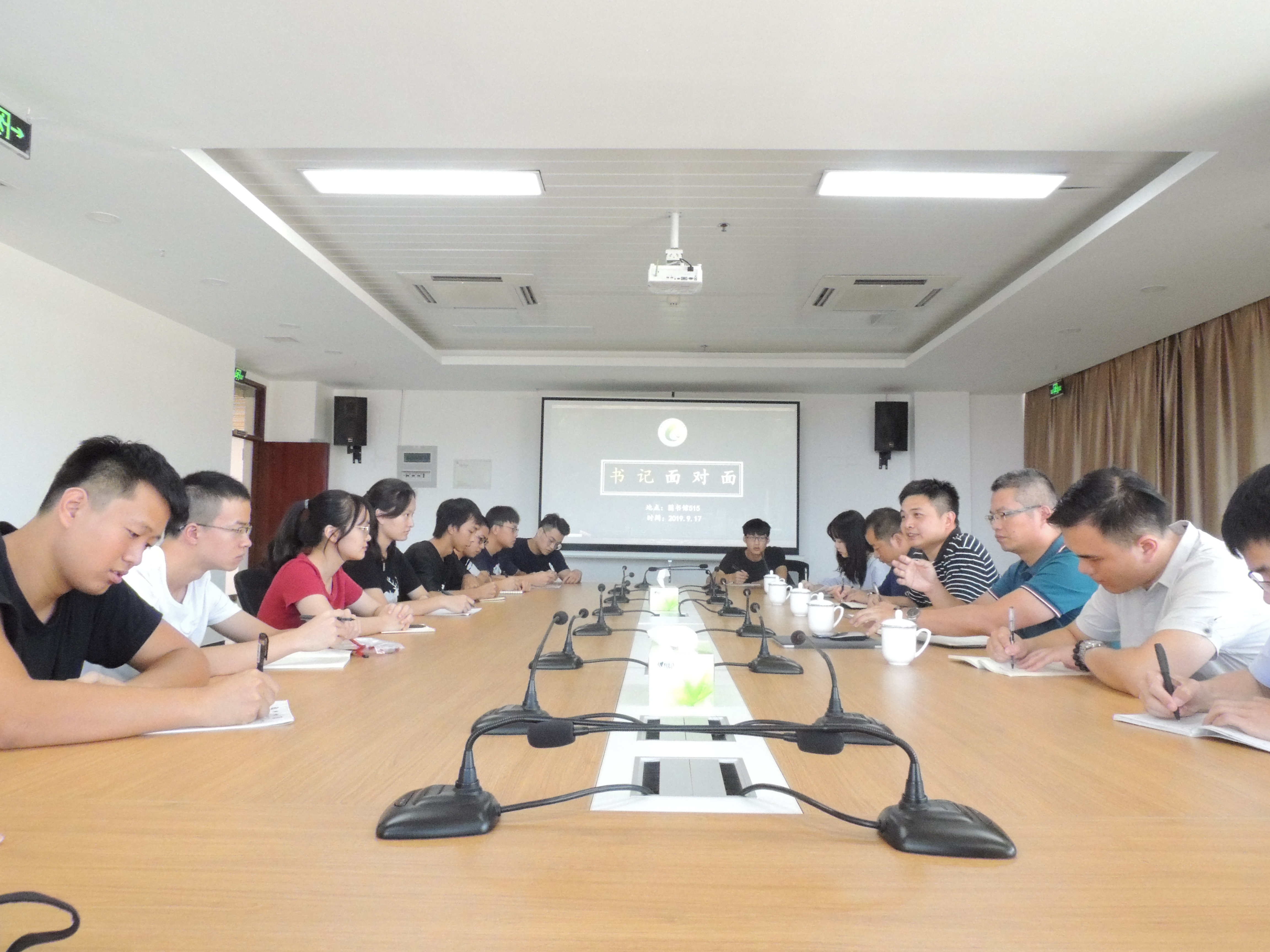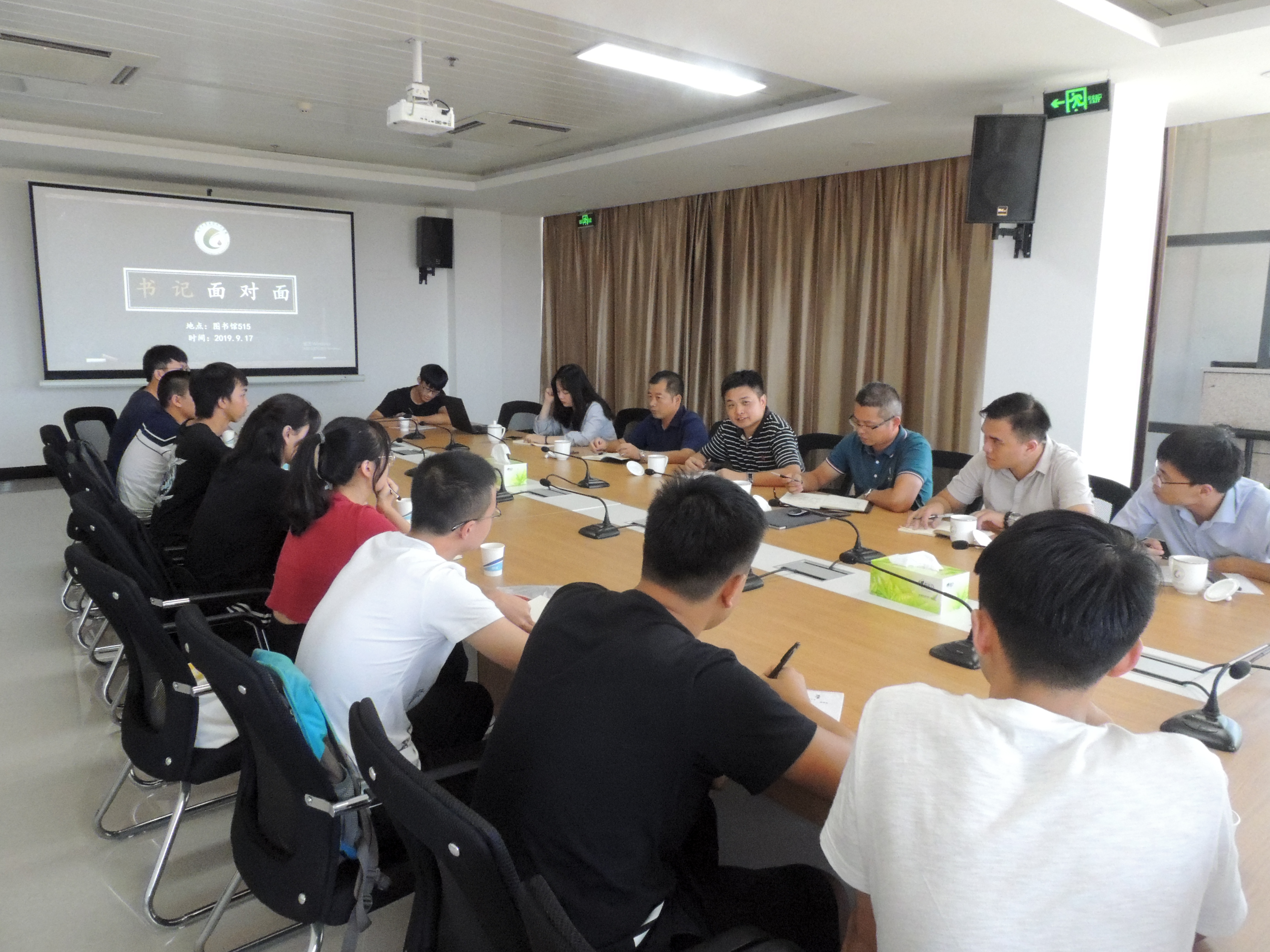 召开“书记面对面”暨“不忘初心 牢记使命”主题教育调研活动。院党委书记叶志清老师、院党委副书记岳志强老师、副院长陈全成老师、16级辅导员何杰老师、17级辅导员江良煊老师以及黄少唯老师出席了本次活动。