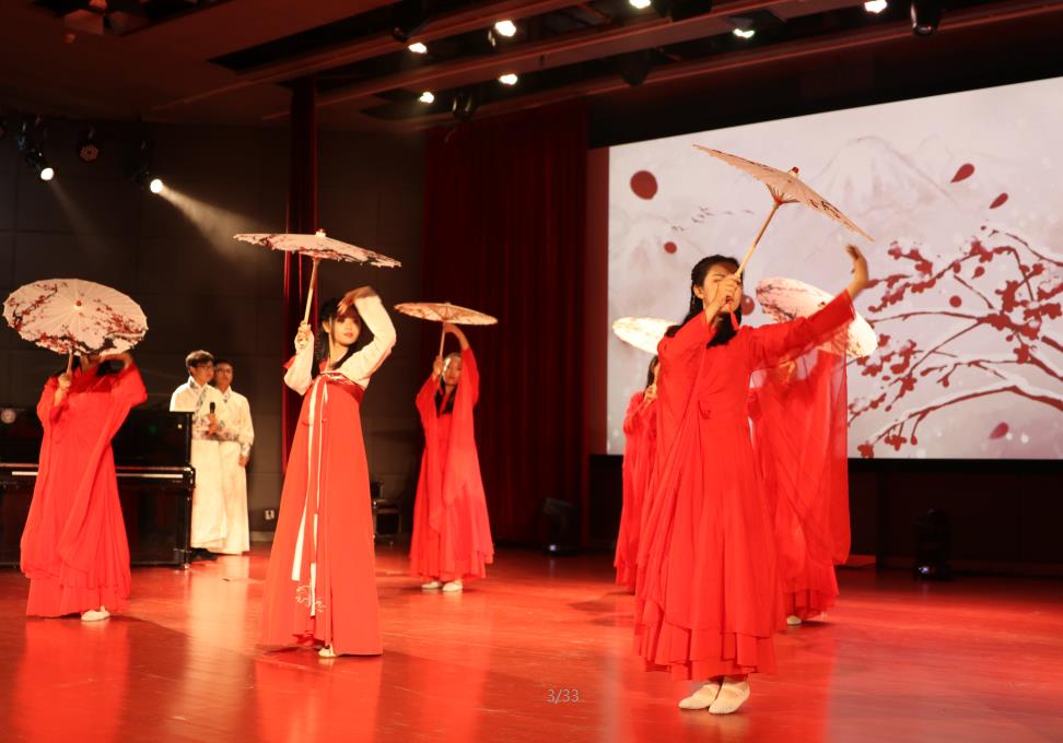 器乐队带来的表演《如果有你》拉开了晚会的序幕,行云流水的演奏余音绕梁,令现场观众逐渐融入欢乐的晚会气氛中。饮一壶浊酒,一曲离人愁,紧接着的舞蹈节目《离人愁》美轮美奂,令人陶醉。