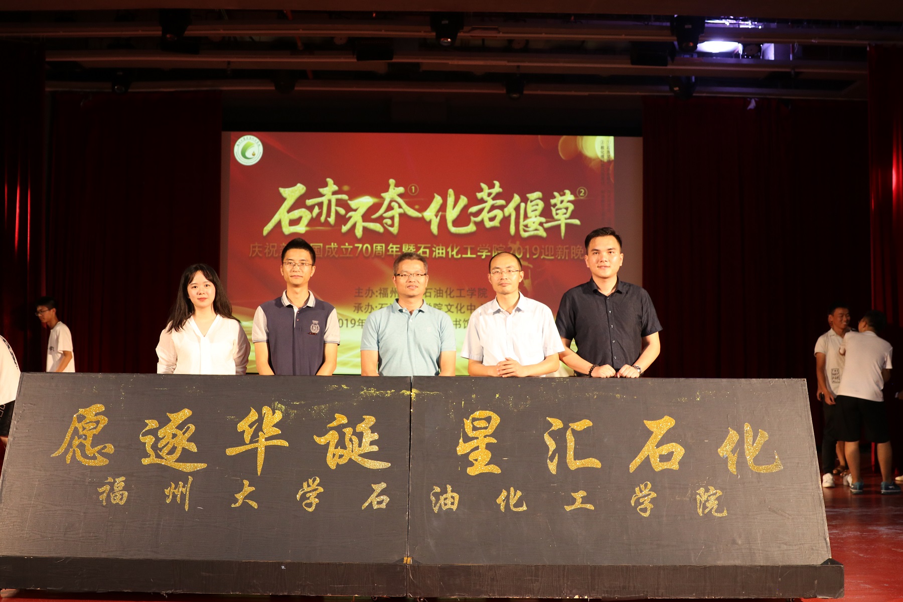 石赤不夺共奋进,化若偃草谱新章。值此新中国成立70周年纪念日前夕,我院举办“石赤不夺,化若偃草”—庆祝新中国成立70周年暨2019迎新晚会,希望19级的石化新生能立鸿鹄志,书少年梦,愿逐华诞,星汇石化,铭记福大校训“明德至诚,博学远志”,自此奋笔疾书,力学不倦,告别过去,筑梦未来。