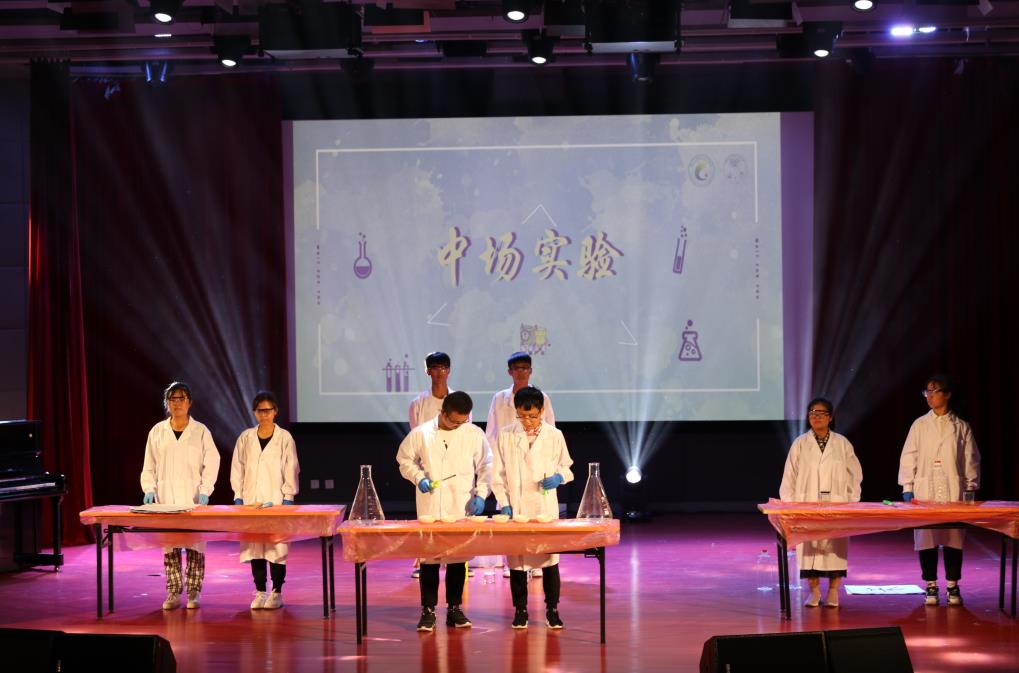 中场环节中,由绿色化工创想协会带来的几个小实验极具观赏性,增添了晚会的趣味性,新生们纷纷参与到名为“瓶中之火”和“神奇泡沫”的互动实验和问答环节中来,引燃了在场观众的热情。