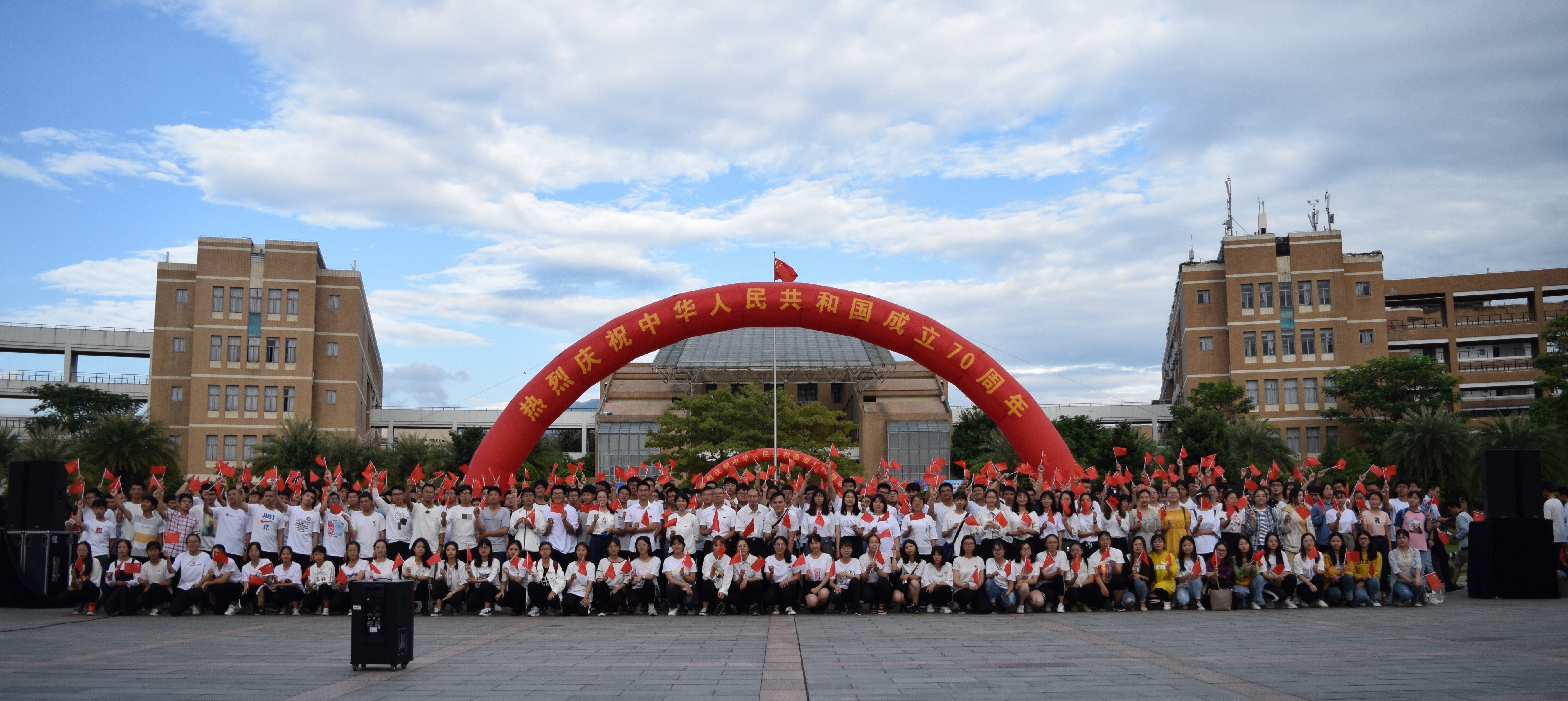 学院师生齐聚五星红旗下,聆听主持人的致辞,面对国旗许下自己的爱国护国誓言并大声表达出自己对祖国的崇敬和美好祝愿。最后,在场师生集体喊出“我是护旗手,我带国旗回家!”的口号。