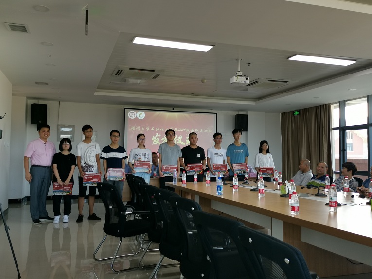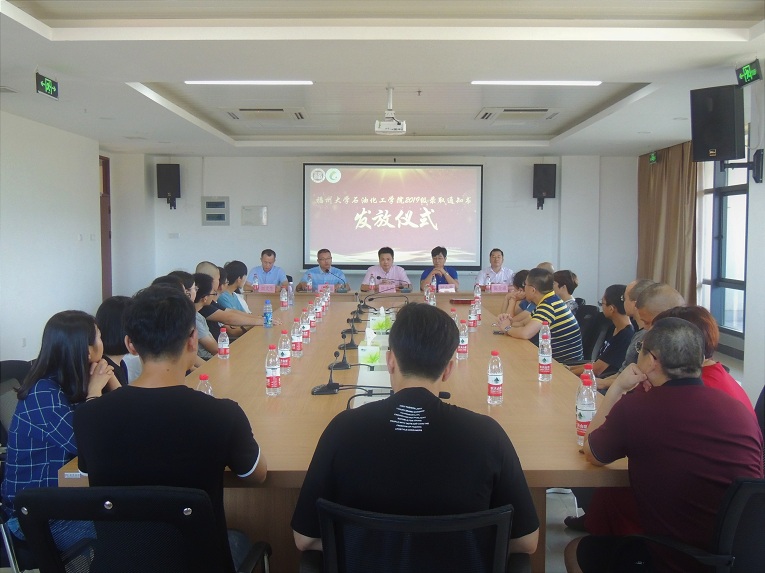 与福建省佑达环保新材料有限公司在泉港区共同举办2019级新生录取通知书发放仪式暨专业教育进企业活动,院党委书记叶志清副教授、党委副书记岳志强副教授、副院长陈全成副教授、福建省佑达环保新材料有限公司总经理刘小勇先生、副总经理刘文生先生、2019级泉州籍新生及家长20余人应邀参加。