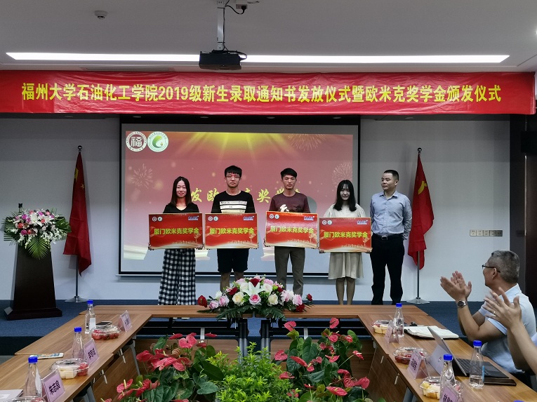 分别设立了“佑达新生奖学金”和“厦门欧米克奖学金”,活动现场还进行了奖学金发放仪式。莆田三棵树涂料股份有限公司拟向2019级全体新生发放全套生活用品,目前正与学院沟通成立涂料班,设置相应奖学金。