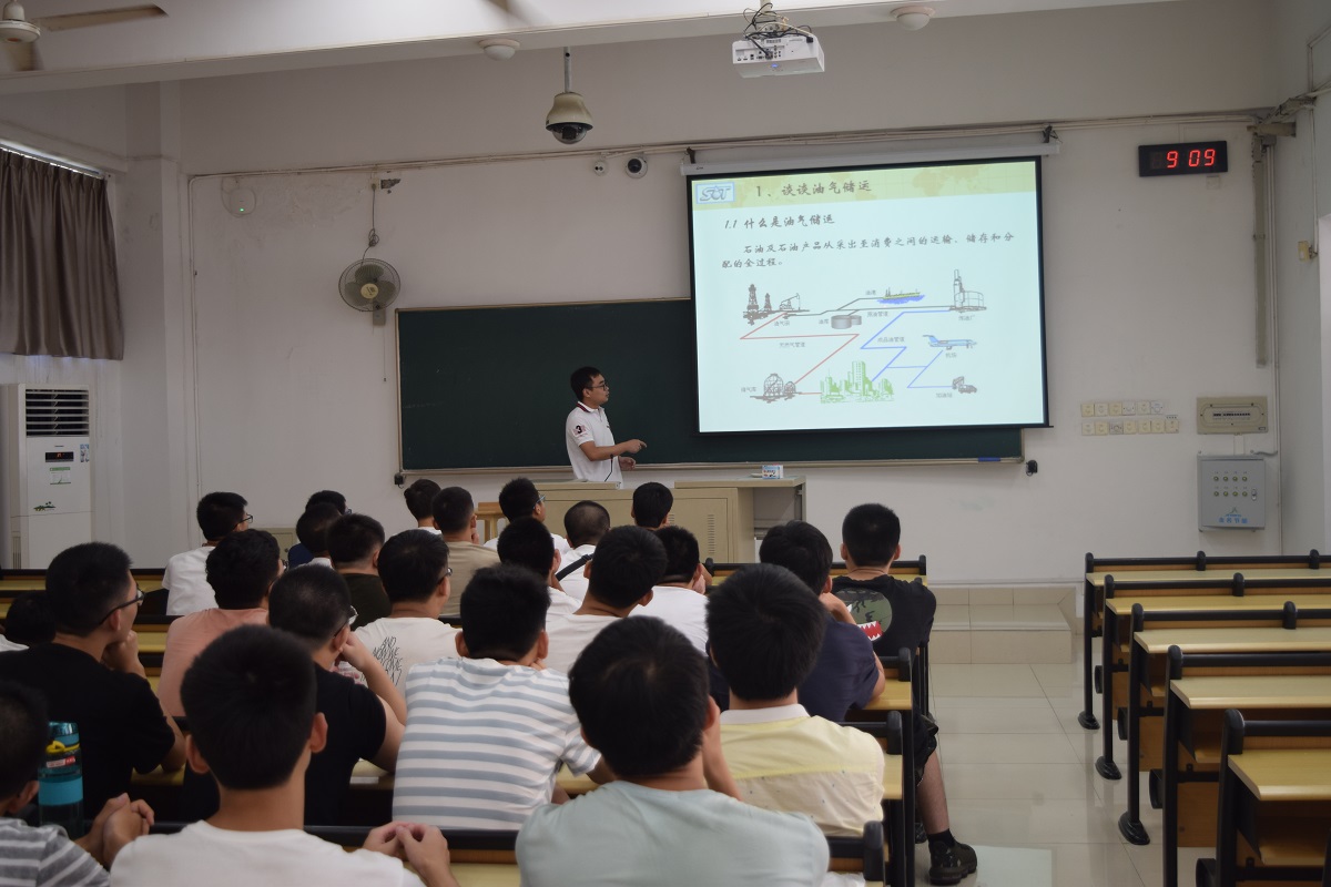 邀请了油储系系主任张朱武副教授、副院长袁珮教授和过控系李学来教授,分别对油储专业、化工专业以及过控专业的新生们进行三个专业的教育。