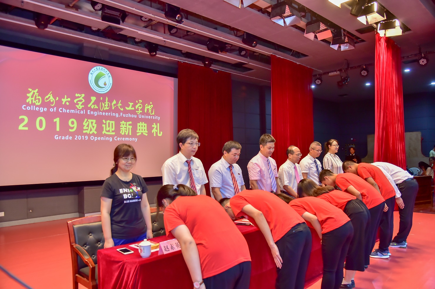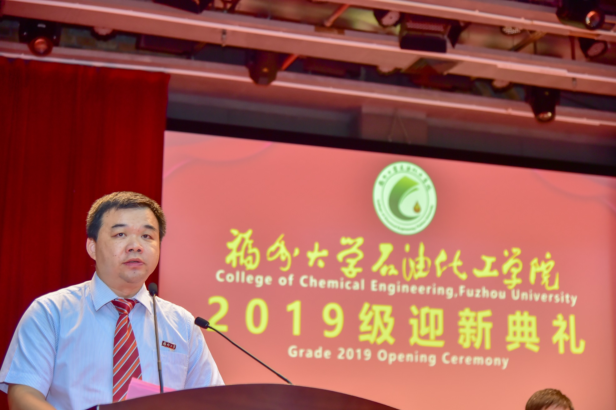 为了更好的给与新生入学的仪式感,全体党政领导参加了迎新典礼。在典礼上,常务副院长侯琳熙教授亲自致辞,他从石化学院的光彩辉煌的过去和无可限量的未来讲到整个石油化工行业之情形与发展趋势。其致辞旁征博引,他对新生提出了四点希望:即要做砥砺自强的奋斗者、敢于创新的探索者、精益求精的求知者以及知行合一的追梦人。他还劝勉新生学习和传承福大的“三种精神”,坚持“学习第一条”,为自己开启一个光明的未来。