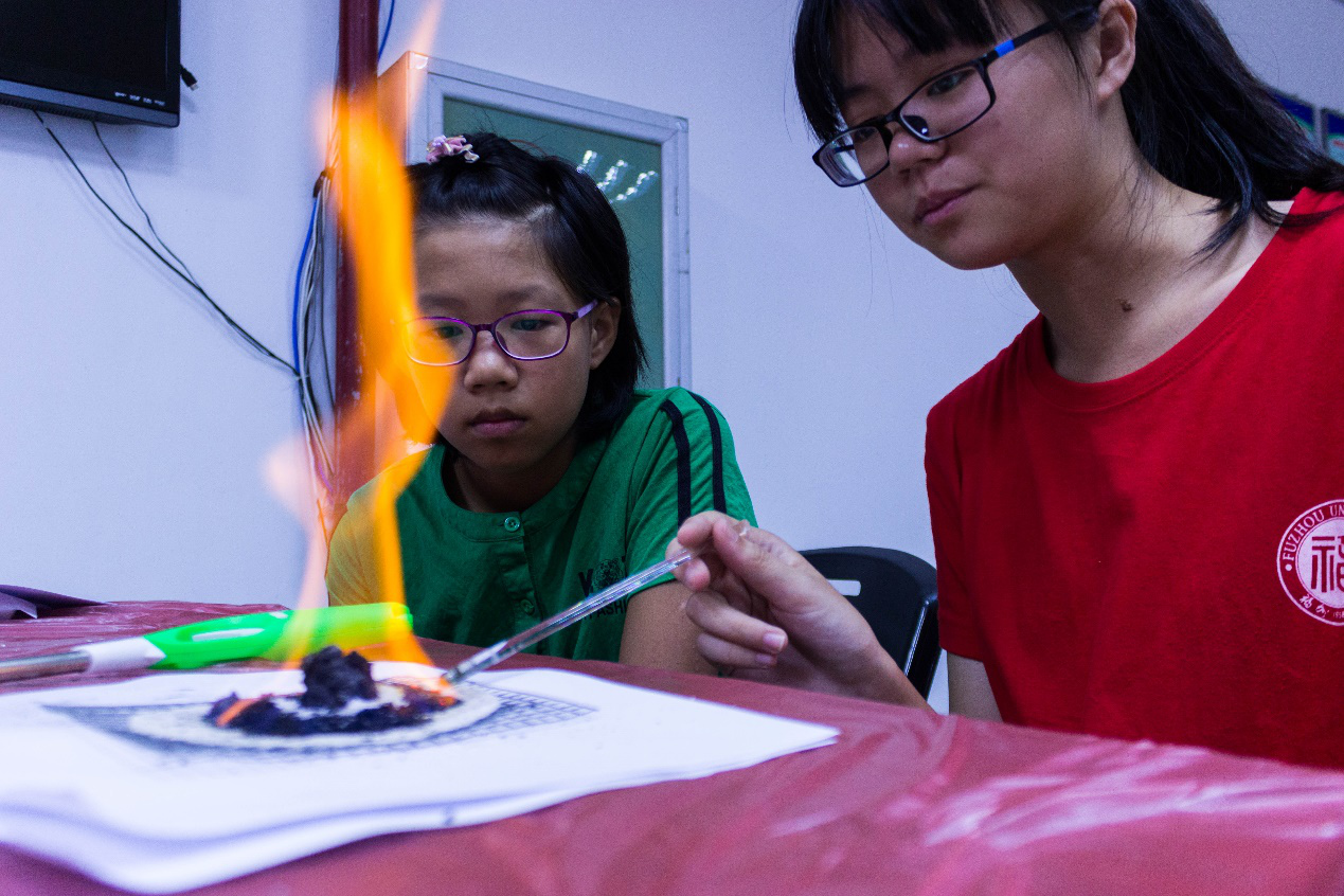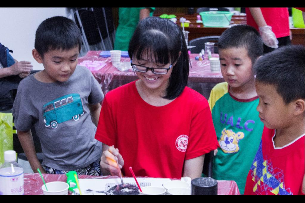 为响应国家可持续发展号召,让很多的普通民众了解绿色化工,宣传环保理念,福大石化学院于7月17日赴丽景社区实践队开展系列活动,实践队进行了“法老之蛇”和“瓶口吐烟圈”的趣味实验,还制作了趣味化工产品“爆爆珠”,以寓教于乐的方式让居民深入了解绿色化工。
