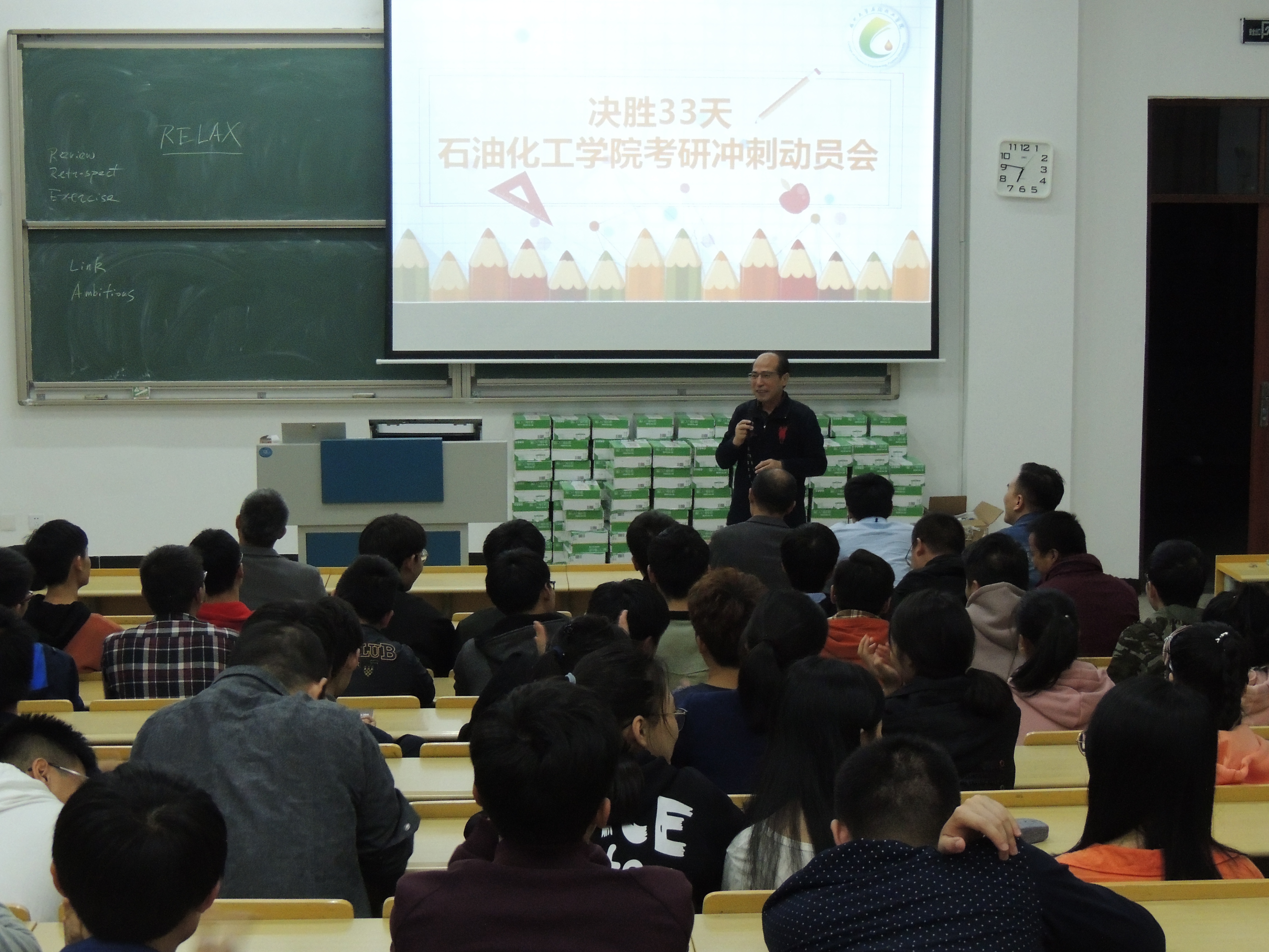 最后,在林泉富老师带领下,动员会在 “石油化工,迈向成功”的口号声中结束。坚定而响亮的口号声使每个人都充满力量,希望全体考研学子以最好的状态备战剩下的33天,为自己的人生交出一份满意的答卷。
