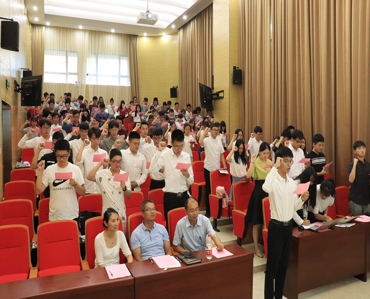 交接完毕后,在新任主席庄家豪的带领下,所有石化学院团委学生会成员起立进行庄严地宣誓。铿锵有力的誓言展现了新一批团委学生会成员们“不忘初心,全心全意为同学服务”的热情。