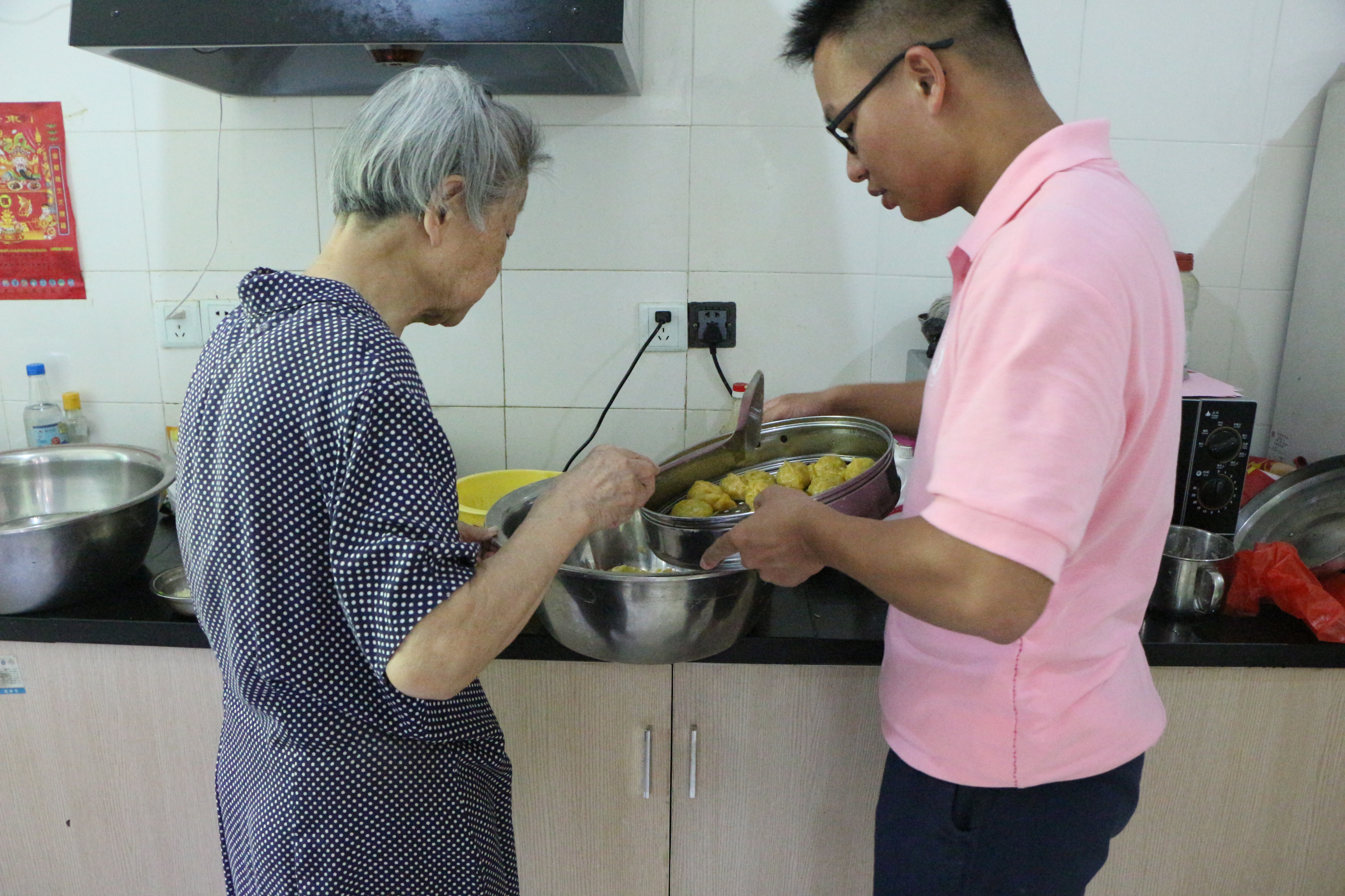 第二组成员则是和社区科学实践中心的工作人员一起为社区的老人和小孩们制作彩虹饺子:力气大的男孩子帮忙揉面团,细心的女孩子们则一起帮阿姨包饺子。午饭时间,热腾腾的彩虹饺子新鲜出锅后,队员们为社区老少成员们“送货上门”。多彩多味的饺子,得到社区老少们的一致好评,他们很感谢我们能顶着炎炎烈日为他们送饺子。
