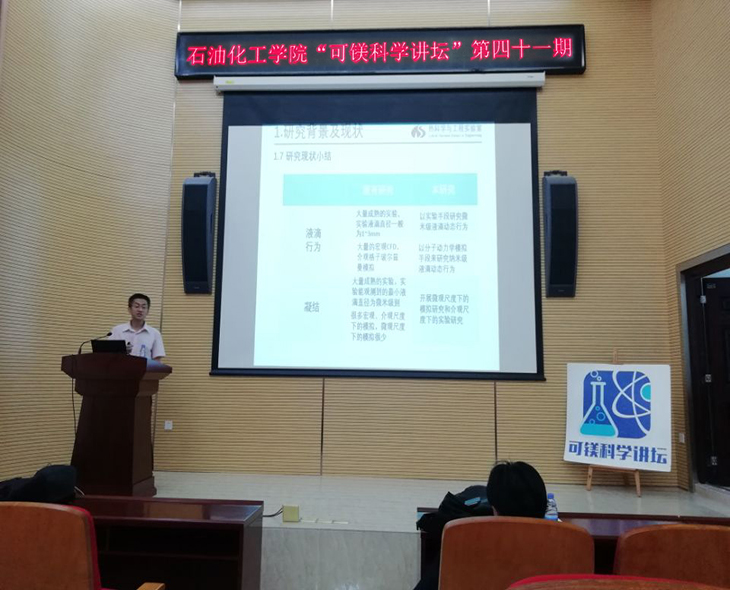 旗山校区北门泉港楼一楼报告厅进行了题为《纳米结构表面上液滴行为及相变过程研究》的精彩学术讲座。本次讲座由杨臣教授主持。