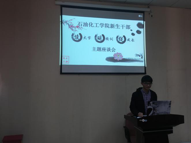 组织新生主要班干部们在院办205开展一次以“读《大学》·明校训·促成长”为主题的座谈会。本次座谈会的主要目的是提升新生主要干部的思想素养,将“读《大学》·明校训·促成长”系列精神结合到之后的班级工作中去。