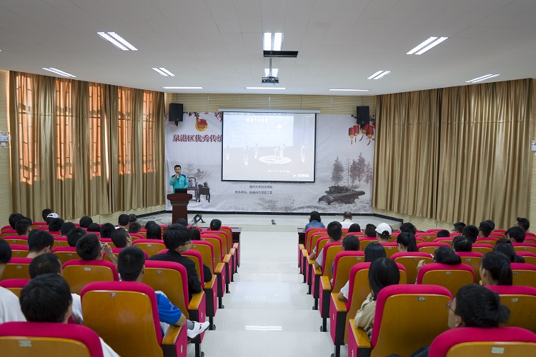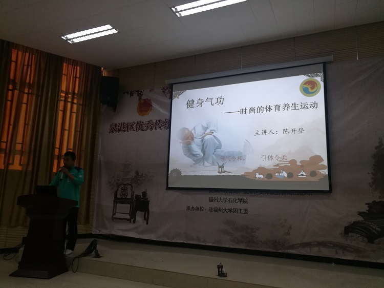 联合泉港区团委、泉港区宣传部、泉港区教育局、泉港区文体旅游新闻出版局联合主办的“泉港区优秀传统文化进校园系列活动”之一,特地邀请到了健身气功世界冠军、泉港区文体新局的陈开登老师作为主讲人,学院团委副书记兼2014级辅导员伍宇翔老师主持了本次活动。