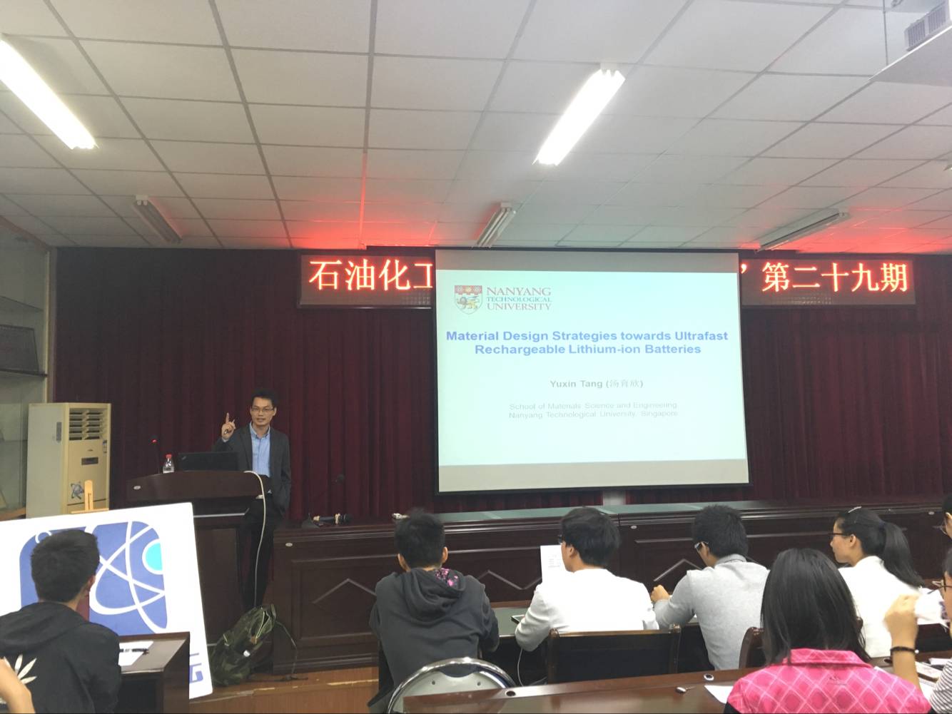 讲座开始之初,汤育欣博士诚挚慰问在场师生,得到了全场师生们热烈的掌声。汤育欣博士诙谐幽默的谈吐更为本次讲座带来了轻松的气氛。汤博士以“锂电池材料”为引,深入浅出的对纳米材料介质及特征与其在锂电池快速充电领域中的应用进行了详细介绍。本次讲座在全场师生的掌声中完美结束。