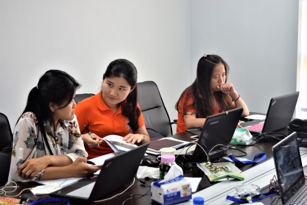 7月17号上午,博士服务实践队成员们在会议室中继续研讨着上周布置的课题——如何把理论制备路线运用到工业上。从反应机理的设计,到催化剂的选择,还有对产品选择性、转化率的满足,种种要求无形之中增大了博士们研究课题的难度。大家通过查阅文献资料,模拟反应进程,不断接近最终的结果。