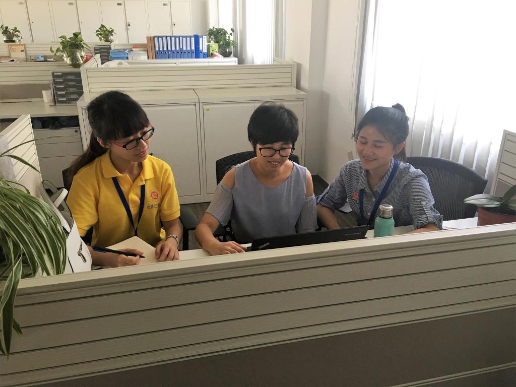 前黄镇政府是我队最早入职的地方,经过一周的熟悉,大家都对自己部门有了一定的了解。每天接待各村到访的群众,虽然不会闽南话,但这并不妨碍队员们与群众成为好朋友。当然,在工作中,确实总会有遇到麻烦时候,还好有部门的小姐姐能够帮忙解决。