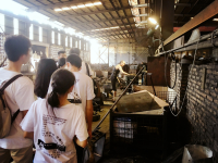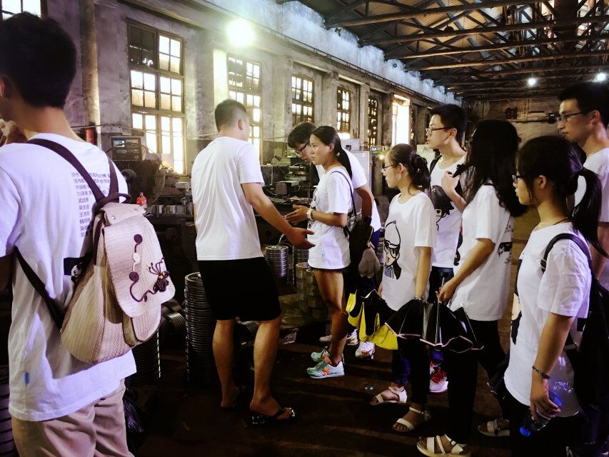 长乐机纺厂污染调查实践队一行人员走访银利机械厂,切身感受精密零件的制造工艺,体验机械厂的作业环境。