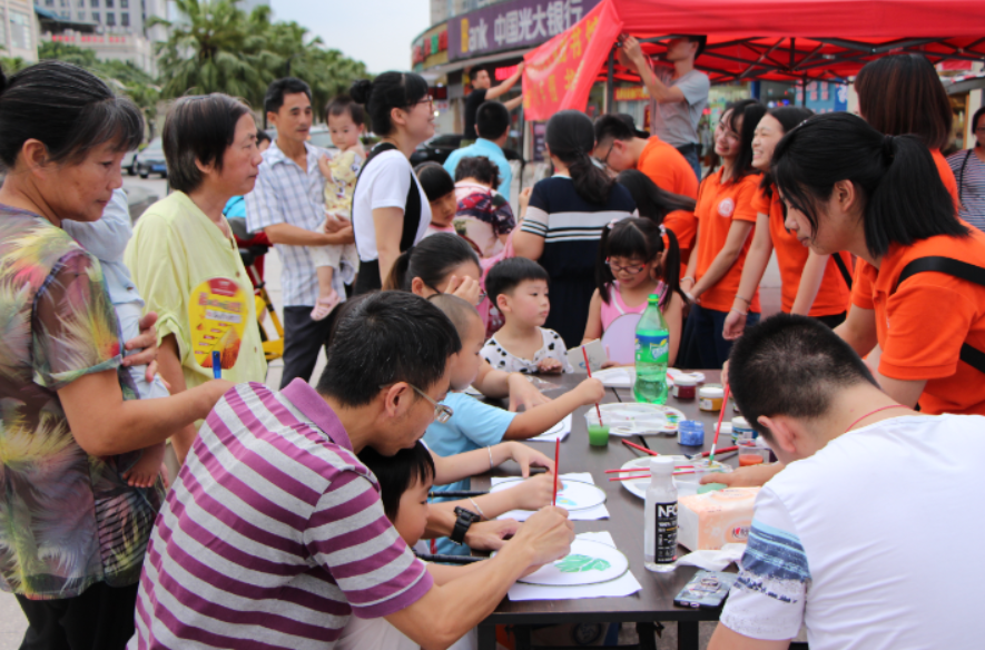 石化学院赴仓山区金环社区暑期社会实践队于榕城广场开展“再现传统风姿,新秀文化精彩”主题游园活动。本次活动内容主要分为以下四个版块:创意团扇、传统脸谱、润饼品鉴、益智灯谜。活动吸引了大量市民朋友前来参与。在现场时常看到小朋友们新奇的绘画方式,群众们对传统美食润饼啧啧赞赏的场面。市民朋友们争相向实践队员询问润饼的制作方法。团扇绘画完成后,小朋友们脸上洋溢的笑容让我们倍感开心。活动当中不乏家长们对活动举办的赞美之词,如:“活动的举办不仅丰富了孩子的业余生活,提高了动手能力,也让如今渐渐淡出人们日常生活的传统文化得以传承。”不仅使活动的影响力和感染力大大提升,还使“弘扬传统文化”的主题得以升华。