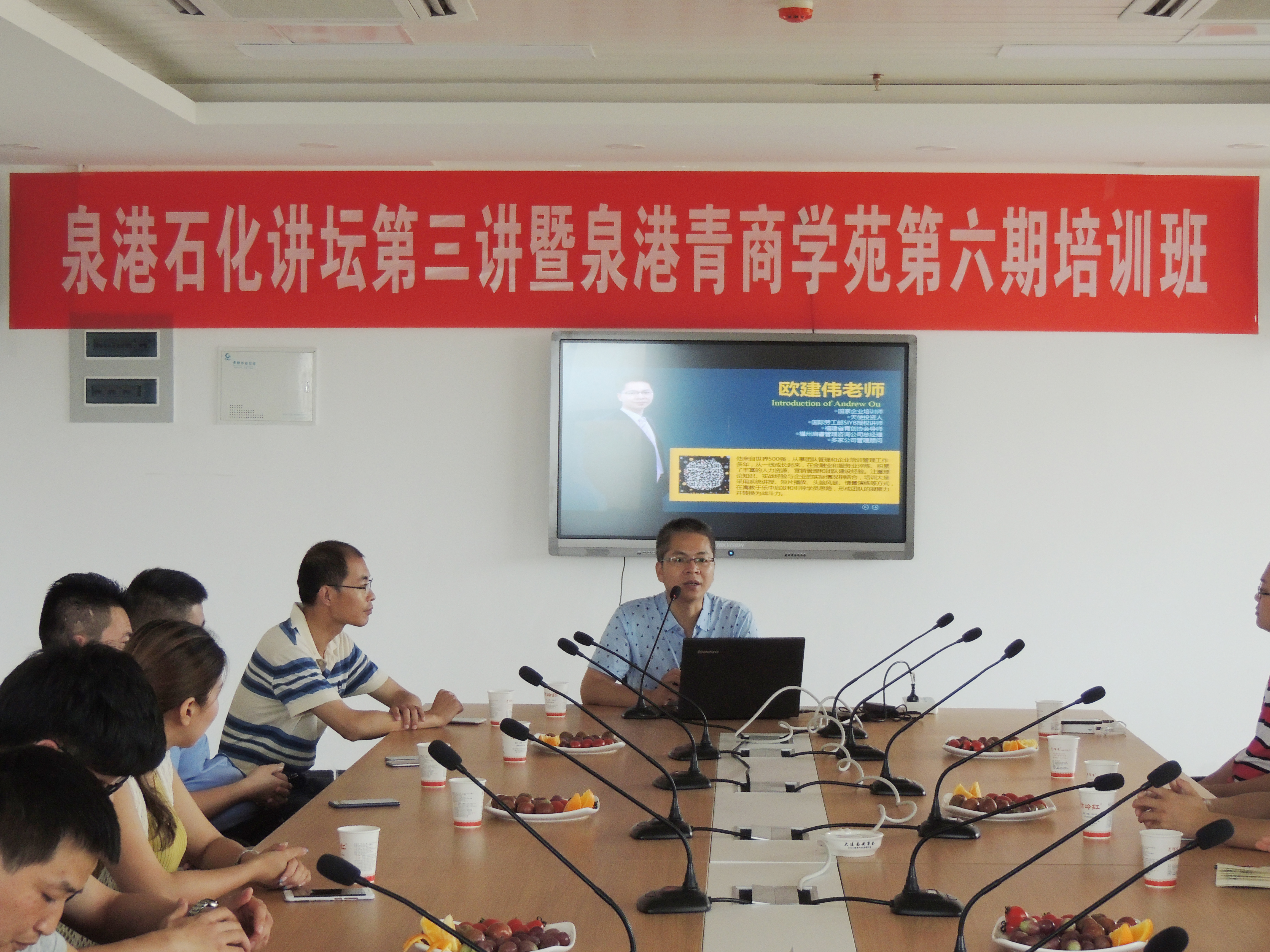 举办的泉港石化讲坛第三讲暨泉港青商苑第六期培训班,在泉港校区图书馆515会议室正式开班。著名的企业培训师欧建伟老师受邀开讲,泉州的部分青年企业家以及学院团委副书记伍宇翔、部分大三大四同学参加了这次创业沙龙交流会。