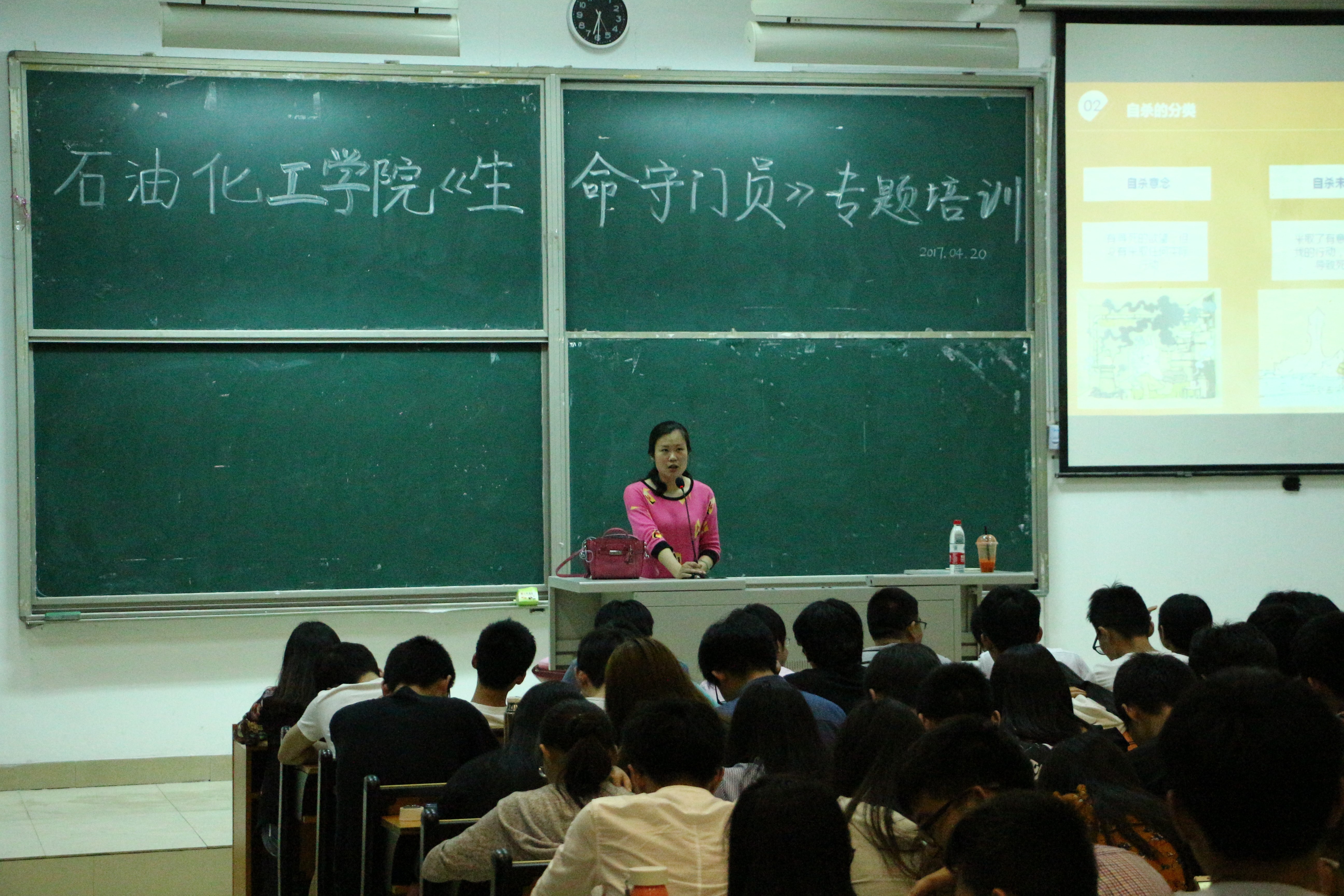 本次培训围绕预防和帮助有自杀倾向的同学展开。期间,许琳玲老师由自杀的原因讲起,继而扩展到援助的方法及基本步骤,禁忌的语言等。现场气氛活跃,许琳玲老师生动讲解,提及重点时细心提醒同学们注意,同学们在台下专心致志,积极回答问题。活动期间还有不少师生互动,一场精彩的台上情景演绎更是让同学们深入了解了如何处理问题。最后,本次培训圆满落幕,同学们受益匪浅。