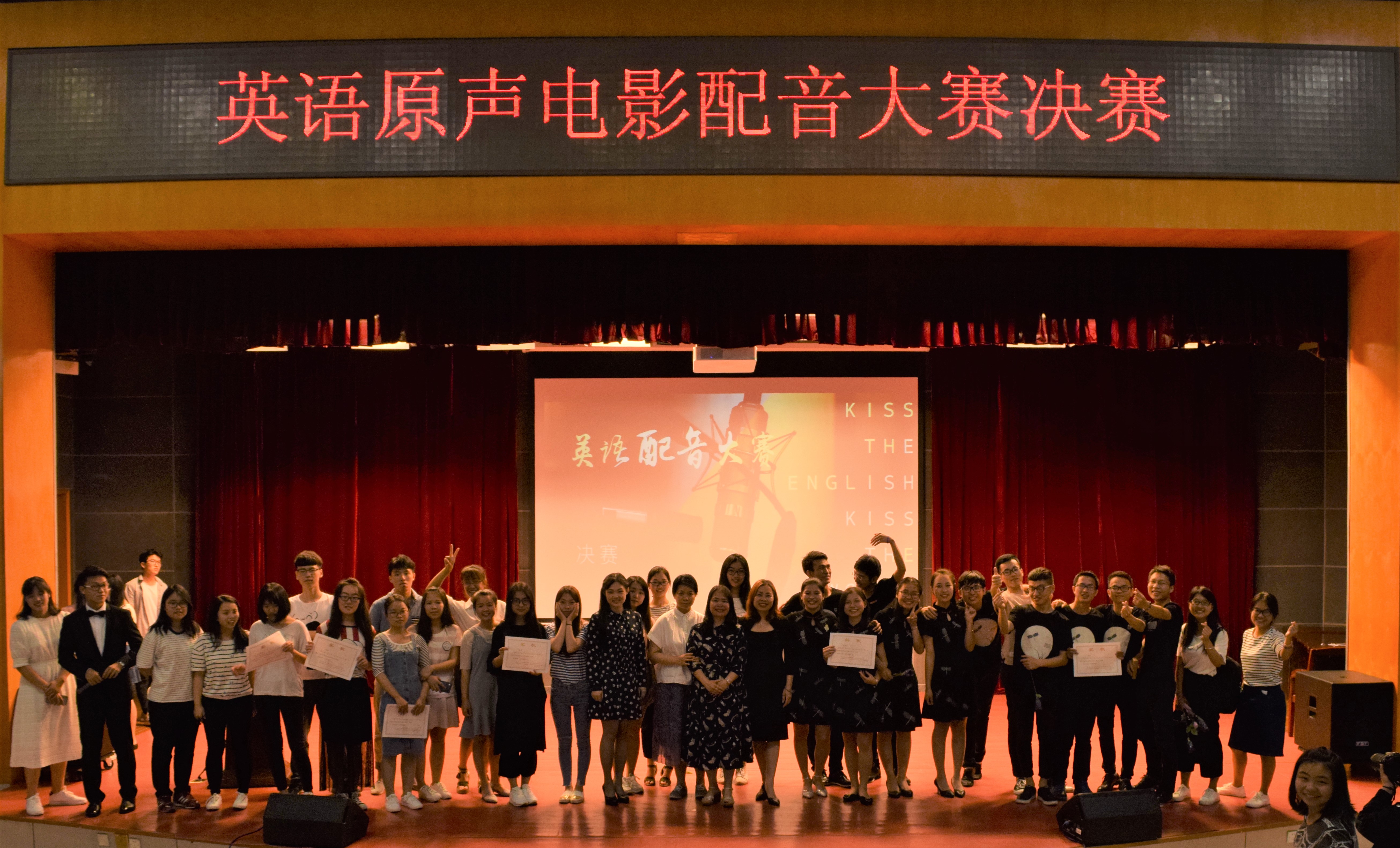 电气学院学习部、石化学院科技学术部、机械学院学习部、数计学院学习部联合举办的英语电影原声配音大赛, 5月13日晚上七点于图书馆明德厅进行了决赛。活动由外国语学院副院长王平、王冰、樊梦博士和叶长缨副教授担任此次决赛的评委。
