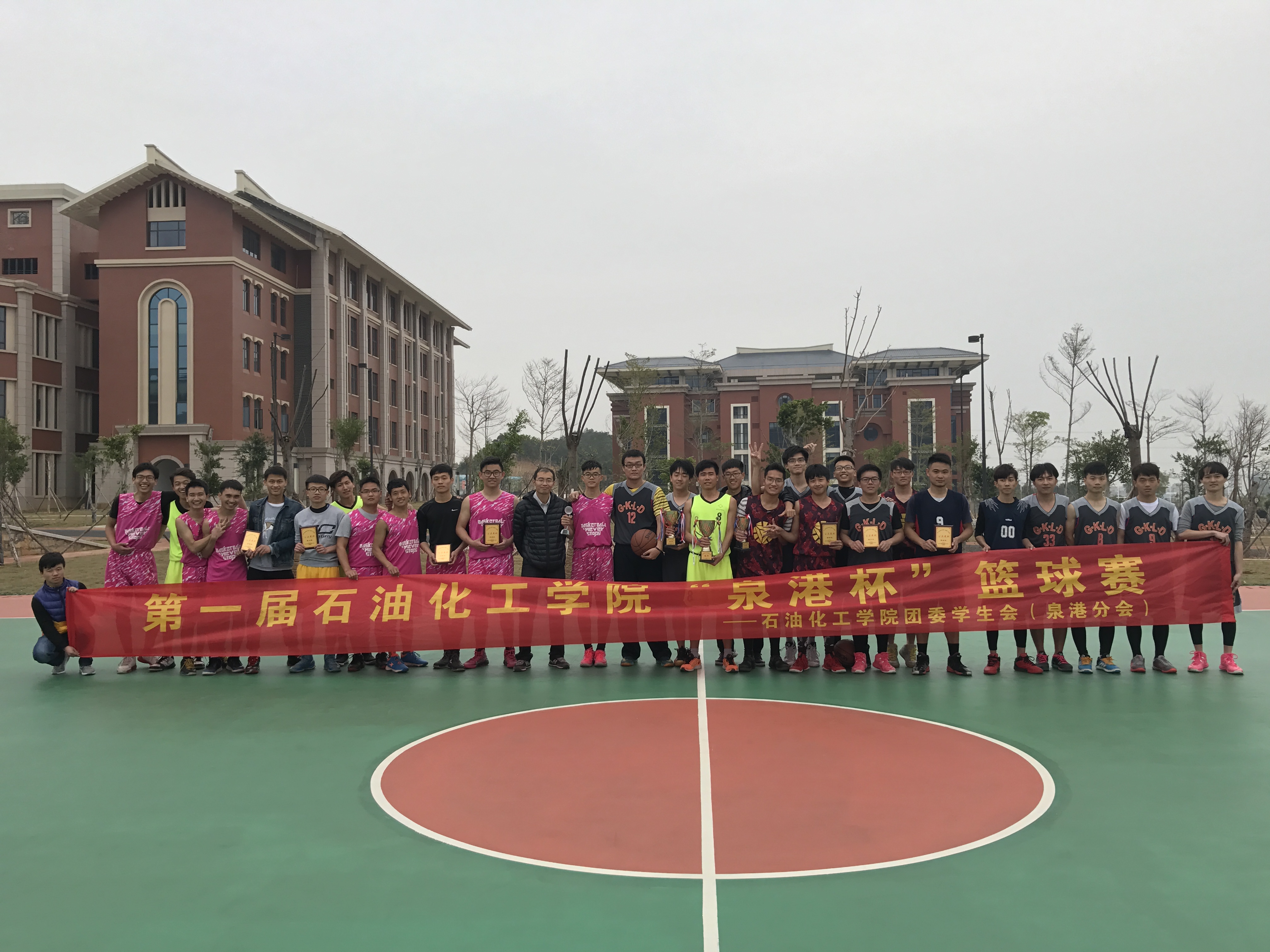 泉港校区的篮球场上人声鼎沸,加油声、呐喊声不绝于耳。石化第一届“泉港杯”校园篮球赛决赛正在双方队员激烈的对抗中进行着。