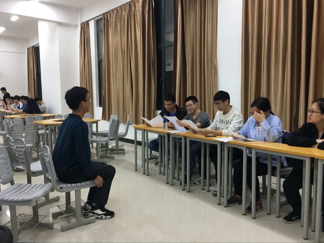 泉港校区分团委于2017年4月7日晚19点在教学楼举办了首届校园模拟面试大赛。本次模拟面试活动邀请了三位嘉宾,分别是:泉港区青商会秘书长、泉州八方人力资源开发有限公司总经理柯龙俊,益海嘉里集团有限公司人事行政经理王键和益海嘉里集团有限公司招聘主管刘惠海。参加本次模拟面试的同学为石化学院2014级全体学生。