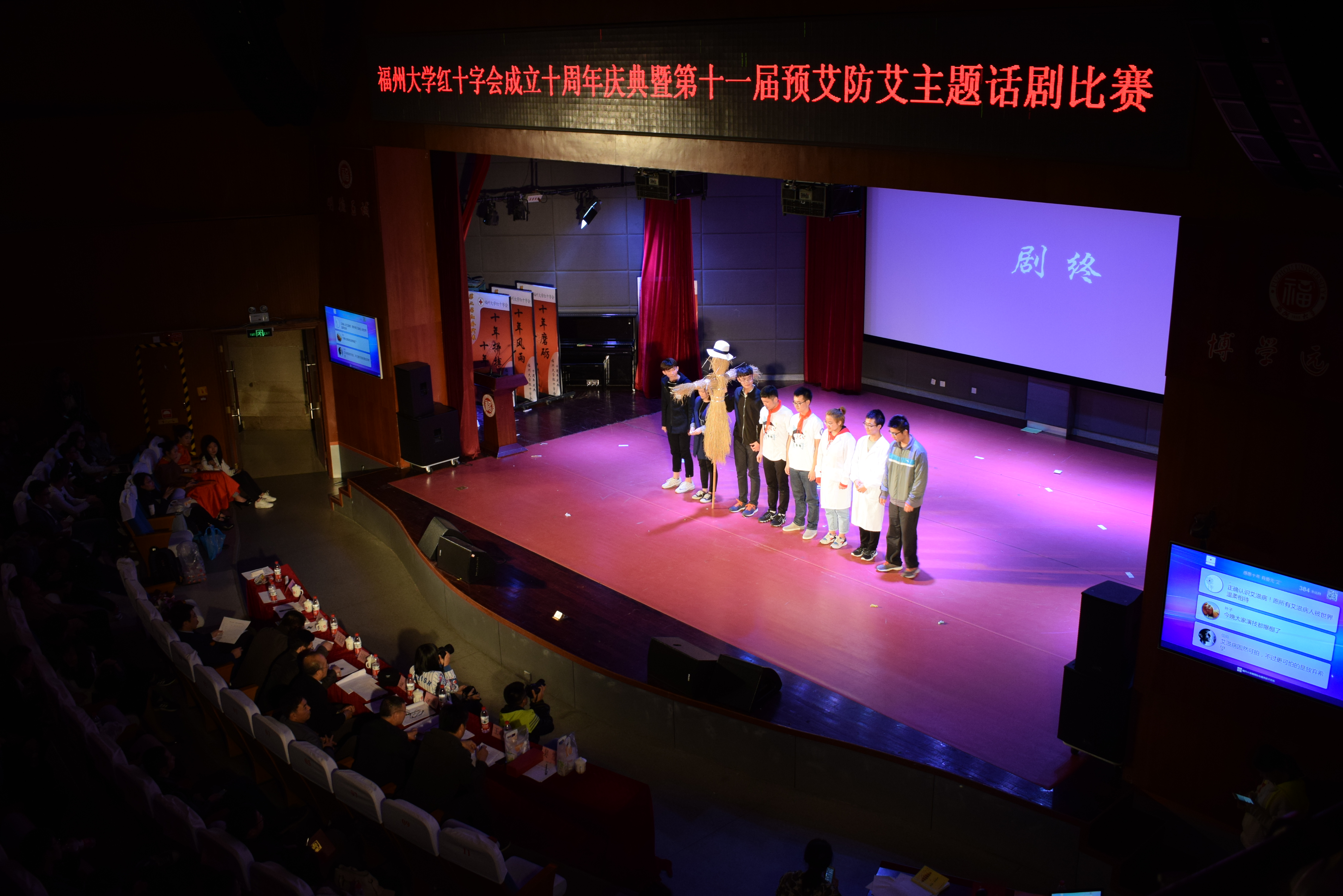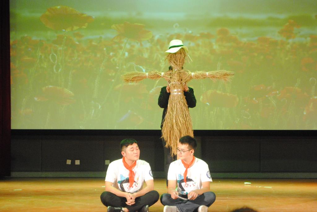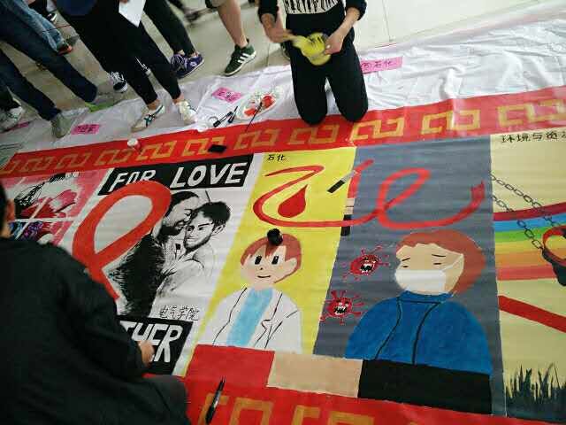 防艾话剧中,"以爱之名,呵护生命"《稻草人》讲述了一位医生的经历。他在救治儿时好友时,不幸染上艾滋,几十年的学识和经验只因那一刀终毁于一旦,而为“零”艾滋奋斗正是他从小立下的目标。积极向上的故事情节,真挚的表演获得许多赞赏。在百米画卷中,红丝带巧妙化成“石化”二字,新颖有意义。