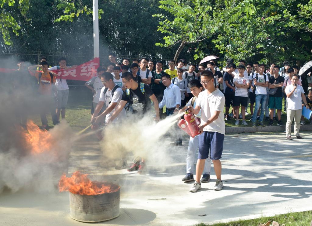 于10月14日下午两点二十分在实验南楼与土木院交界处举行了消防演练活动。保卫部林雄、程翔老师,2016级辅导员陈艺全老师,2015级辅导员黄建鸿老师,2016级助理辅导员何杰老师出席了这场活动。2015级、2016级全体本科生及研究生参与本次活动。