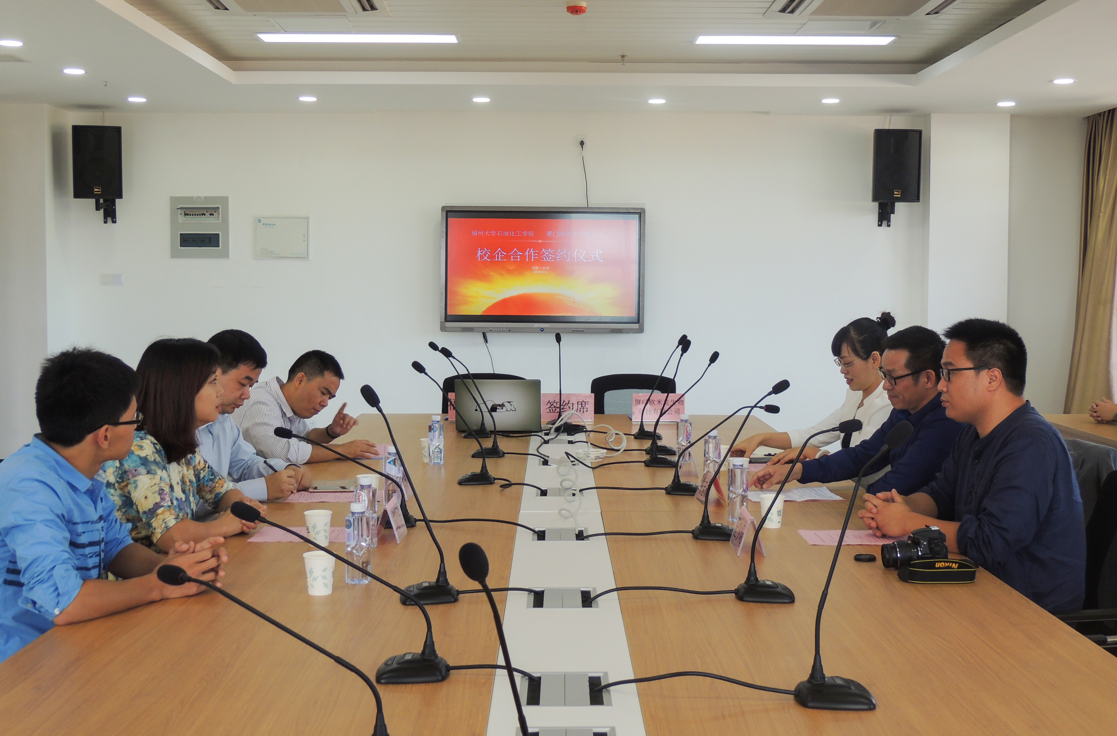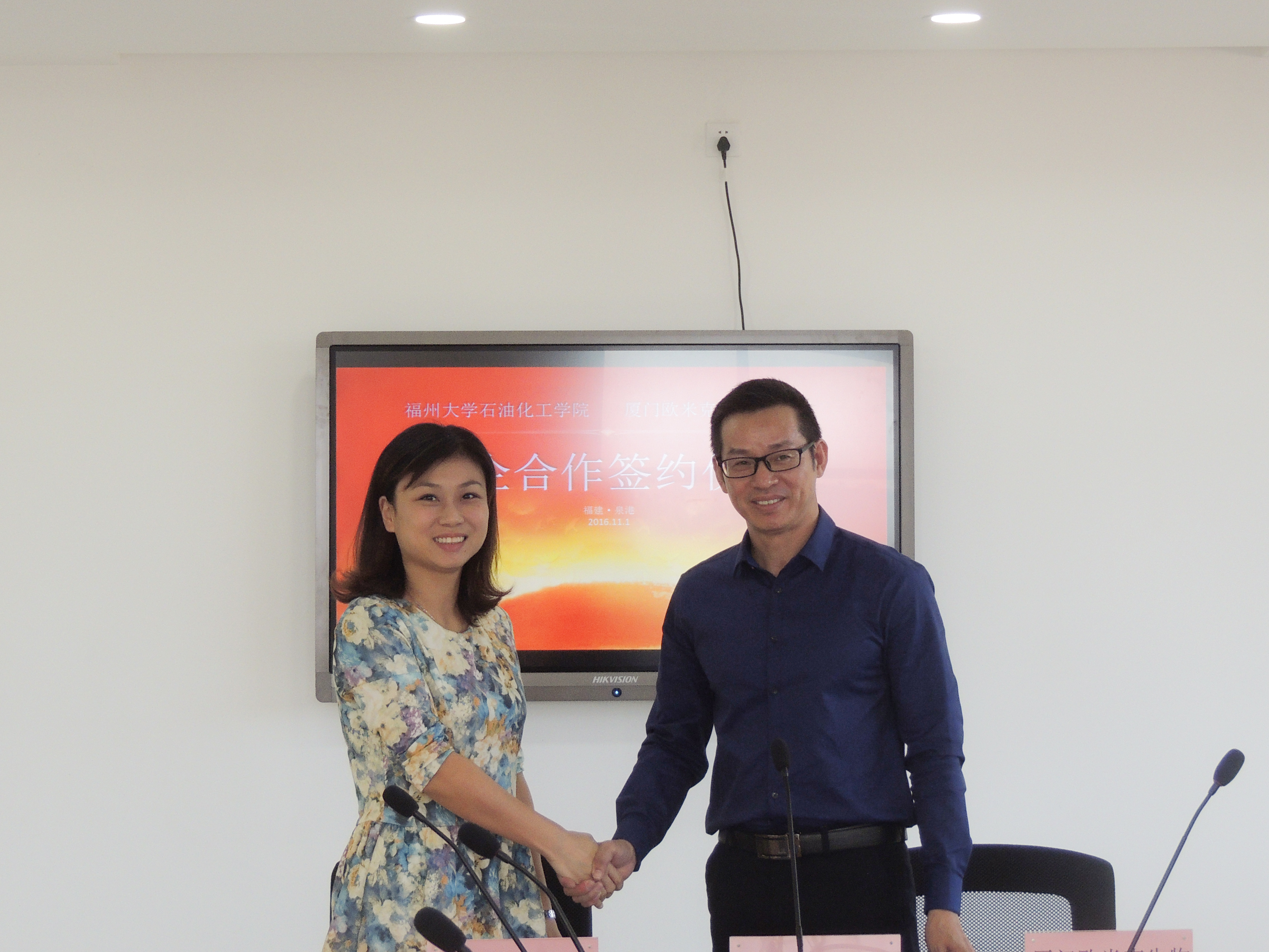 党委副书记刘玮、厦门欧米克生物科技有限公司总经理朱志良分别代表双方签字。厦门欧米克生物科技有限公司技术部经理王少培,人力行政部经理江丹及 苏畅