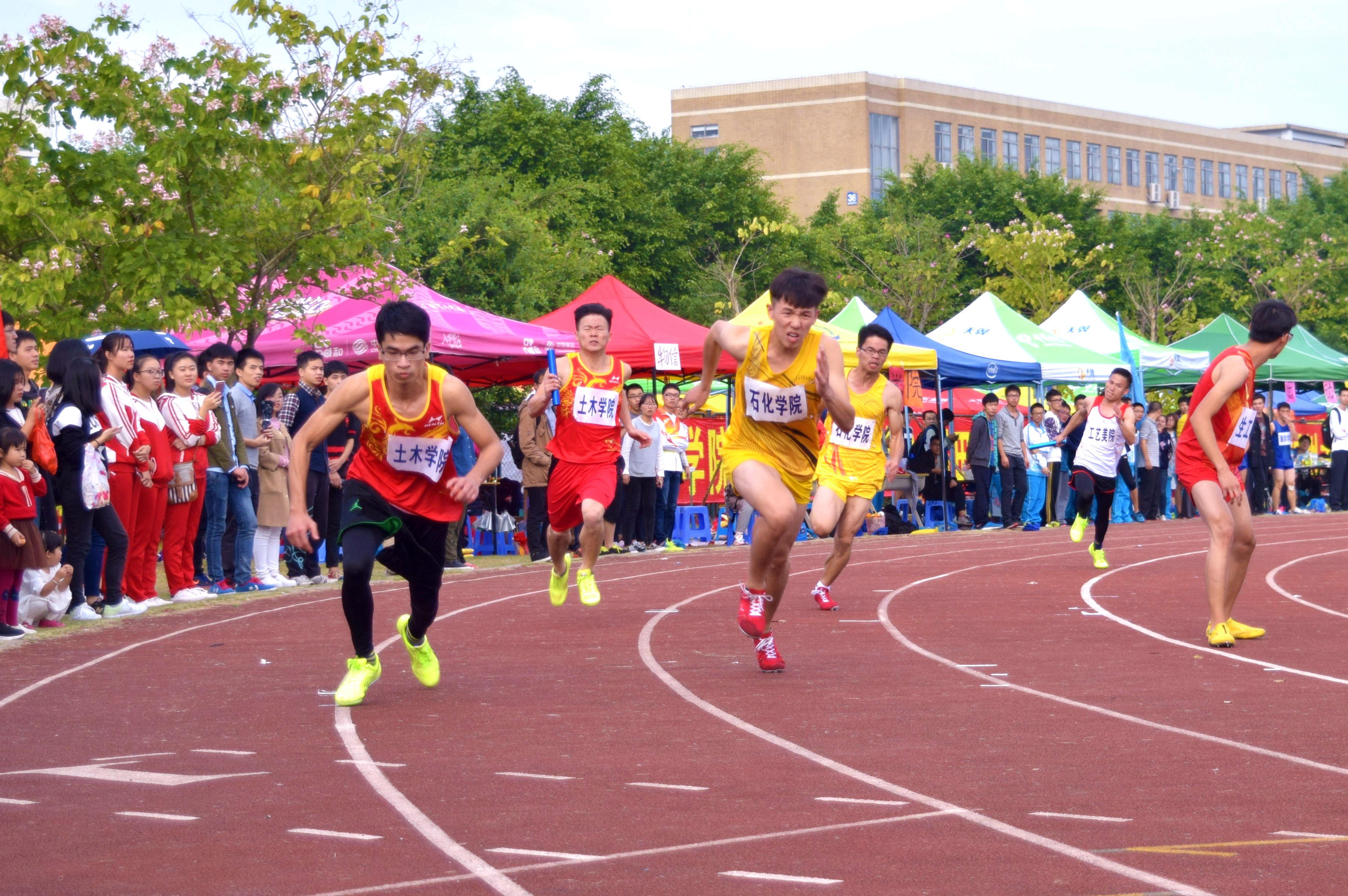 回首过去,泉港校区正式启用,学院克服两地办学的种种困难,积极组织运动员认真训练、努力备战;赛场上,运动员们团结协作、奋勇拼搏,取得了一项接一项的惊人突破,例如何杰同学获“十项全能”冠军,男学甲4X100接力冠军,王家添同学获撑杆跳冠军……石化健儿们拼劲拼勇,用辛勤的汗水浇灌胜利的花朵,用青春的热血迸发无尽的能量。