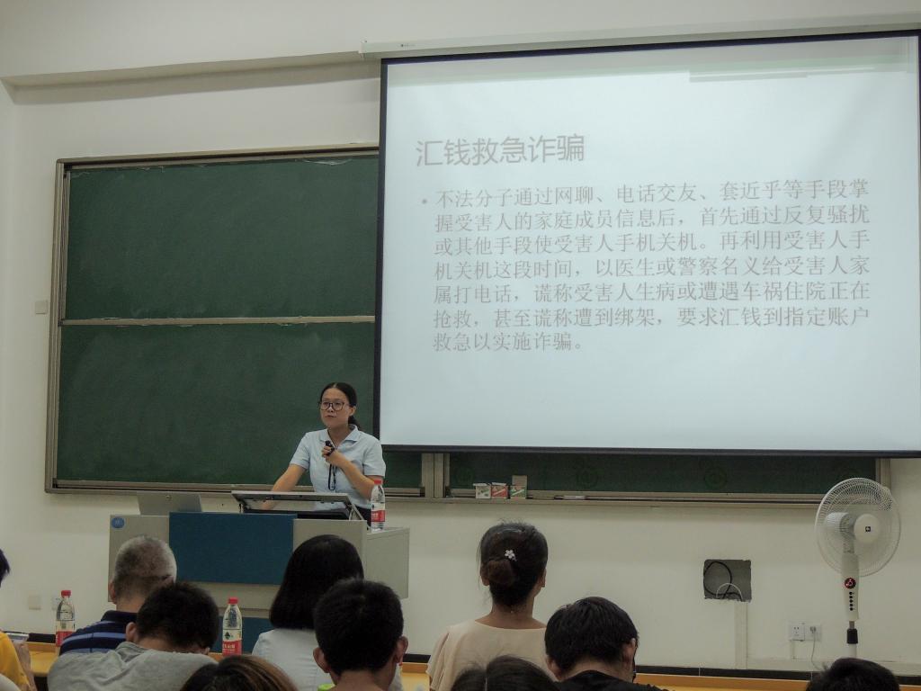 泉港校区特邀建设银行泉港支行职员李美玲,为大家带来一场题为“防金融诈骗”的讲座,本次讲座于9月19日晚7点在教学楼205举行。出席本次讲座的嘉宾有建设银行泉港支行林副行长,建设银行山腰支行行长庄莹红,石油 苏畅