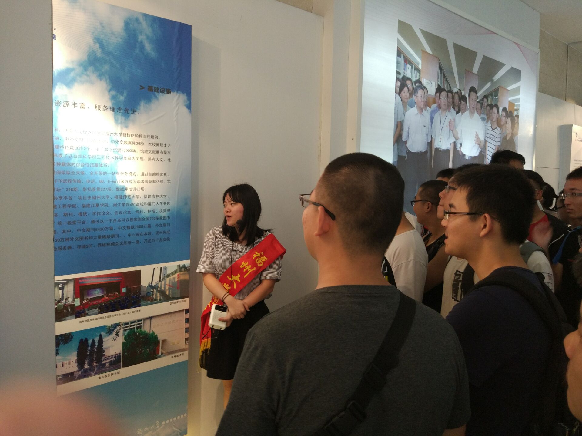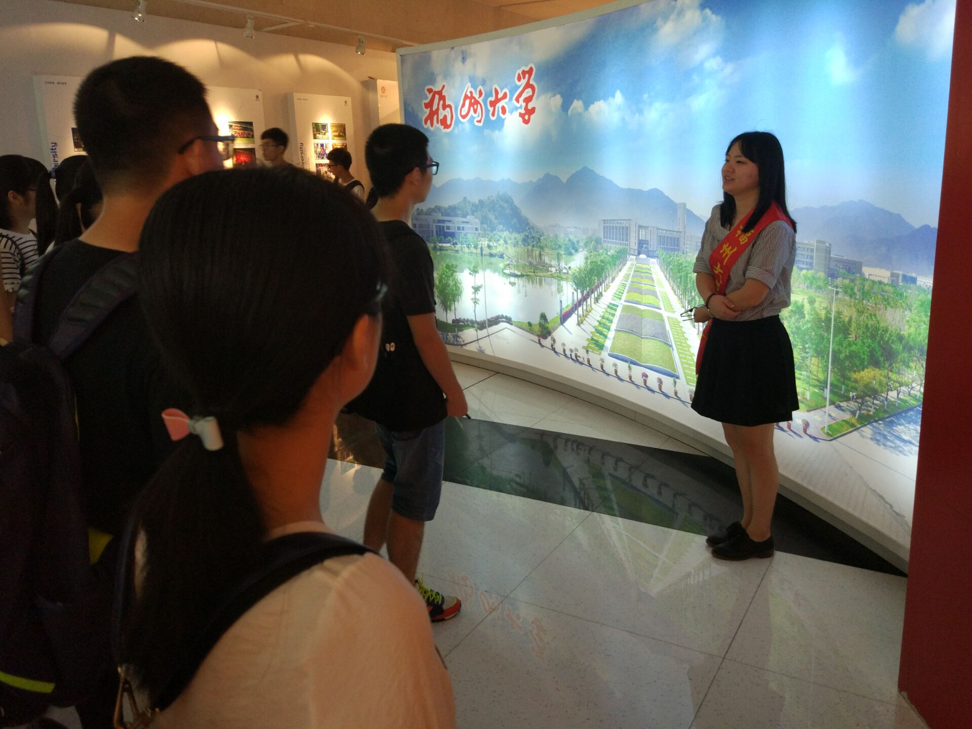 新生们在班导的带领下井然有序地进入福大校史馆进行参观。校史馆工作人员早就准备就绪,热情接待前来参观的同学。