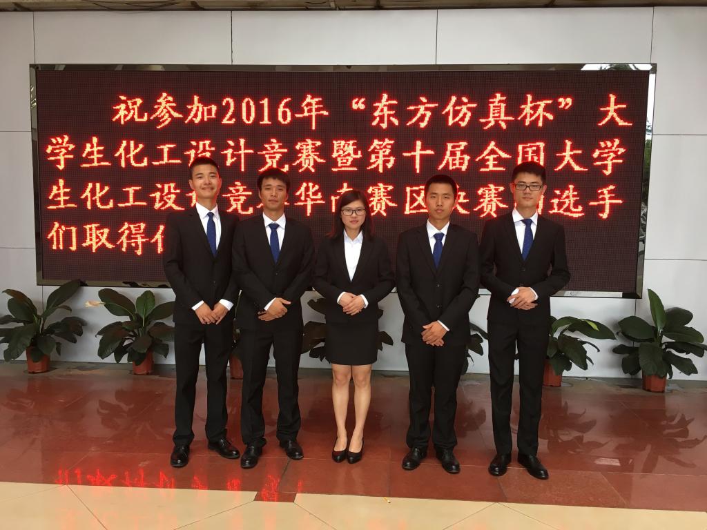 2016年8月3日至6日,第十届全国大学生化工设计竞赛华南赛区决赛在桂林理工大学举办。 苏畅 石油 苏畅 2013级本科生黄起明(队长)、肖晓宏、连聪金、刘艳萍和林德秋五名同学,代表 苏畅 参赛。比赛在前期网评的基础上进行了PPT展示与答辩, 苏畅 学生表现出色,获得第十届全国大学生化工设计大赛华南赛区决赛,国家二等奖的优异成绩。